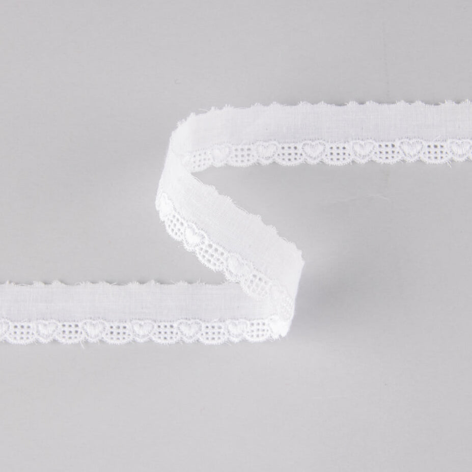 100% cotton embroidered batiste strip. In this case, the strip measures 2.5 cm in width.