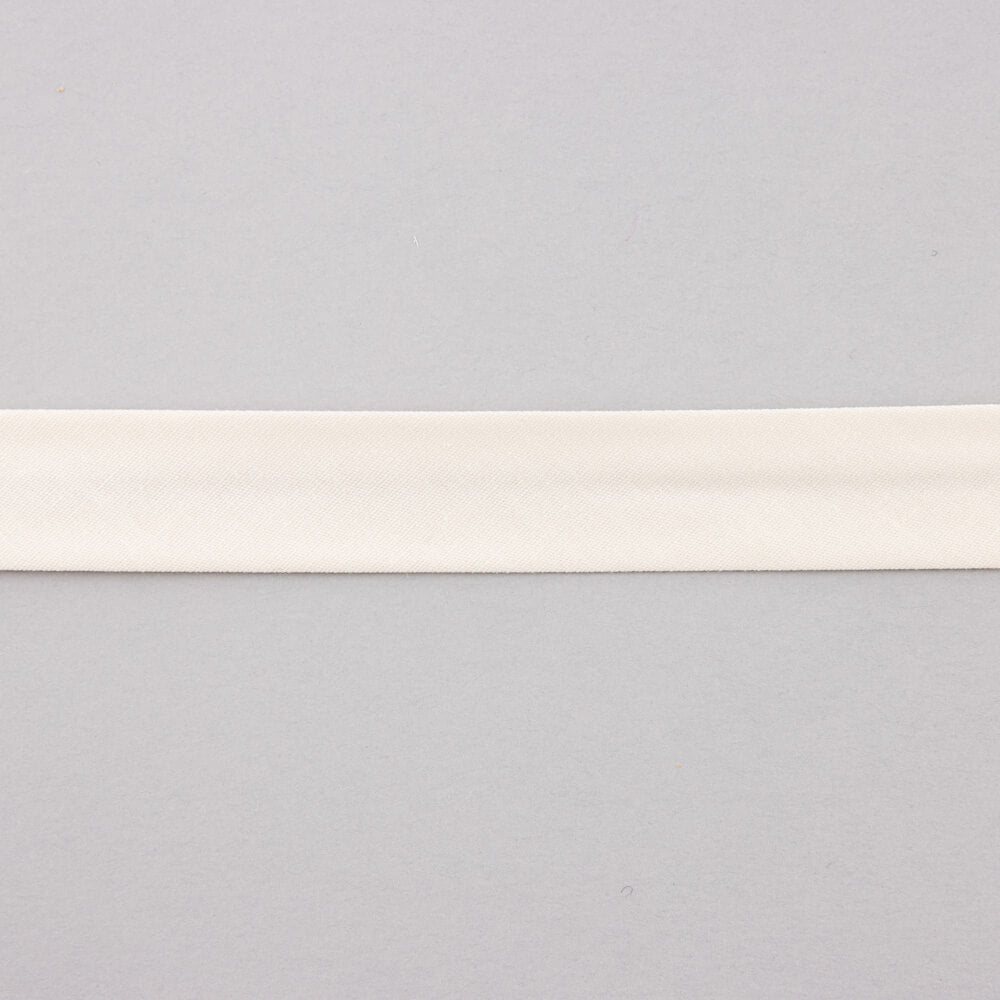 Profiled bias tape in stretch cotton in a plain colour Ecru. Tape width of 18 millimetres. Price per metre.