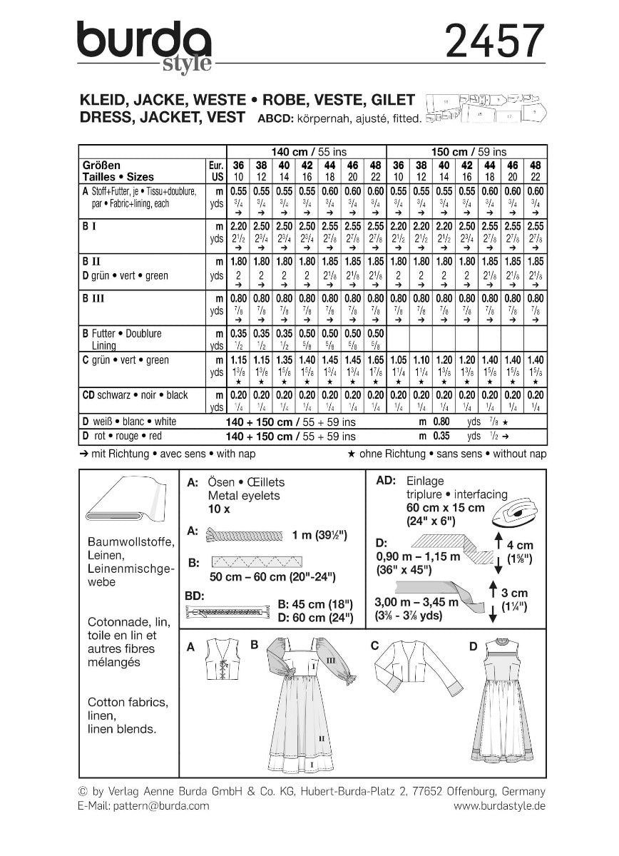 Patrón Burda 2457 Vestidos