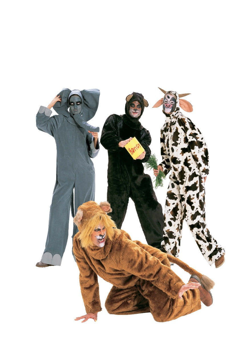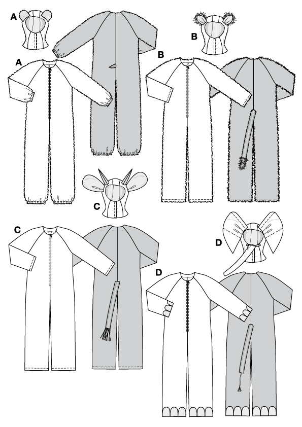 Patrones Burda de 4 originales disfraces con mono de animal, oso, elefante, vaca , león.