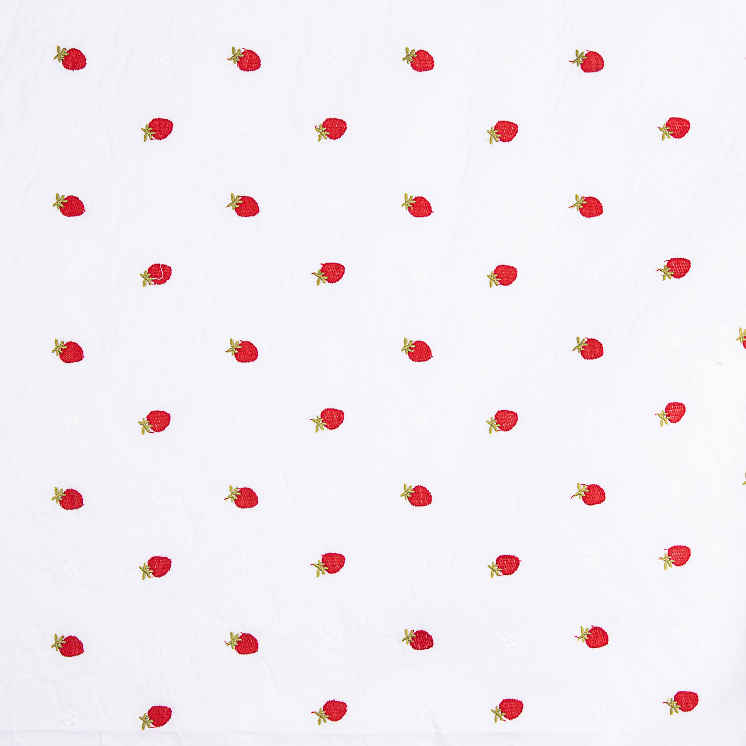 The White Strawberry Embroidered Cotton Batiste is a delicate and fresh fabric made from 100% cotton, with beautiful embroidery of strawberries on a white background that gives it a romantic, natural and spring-like style.