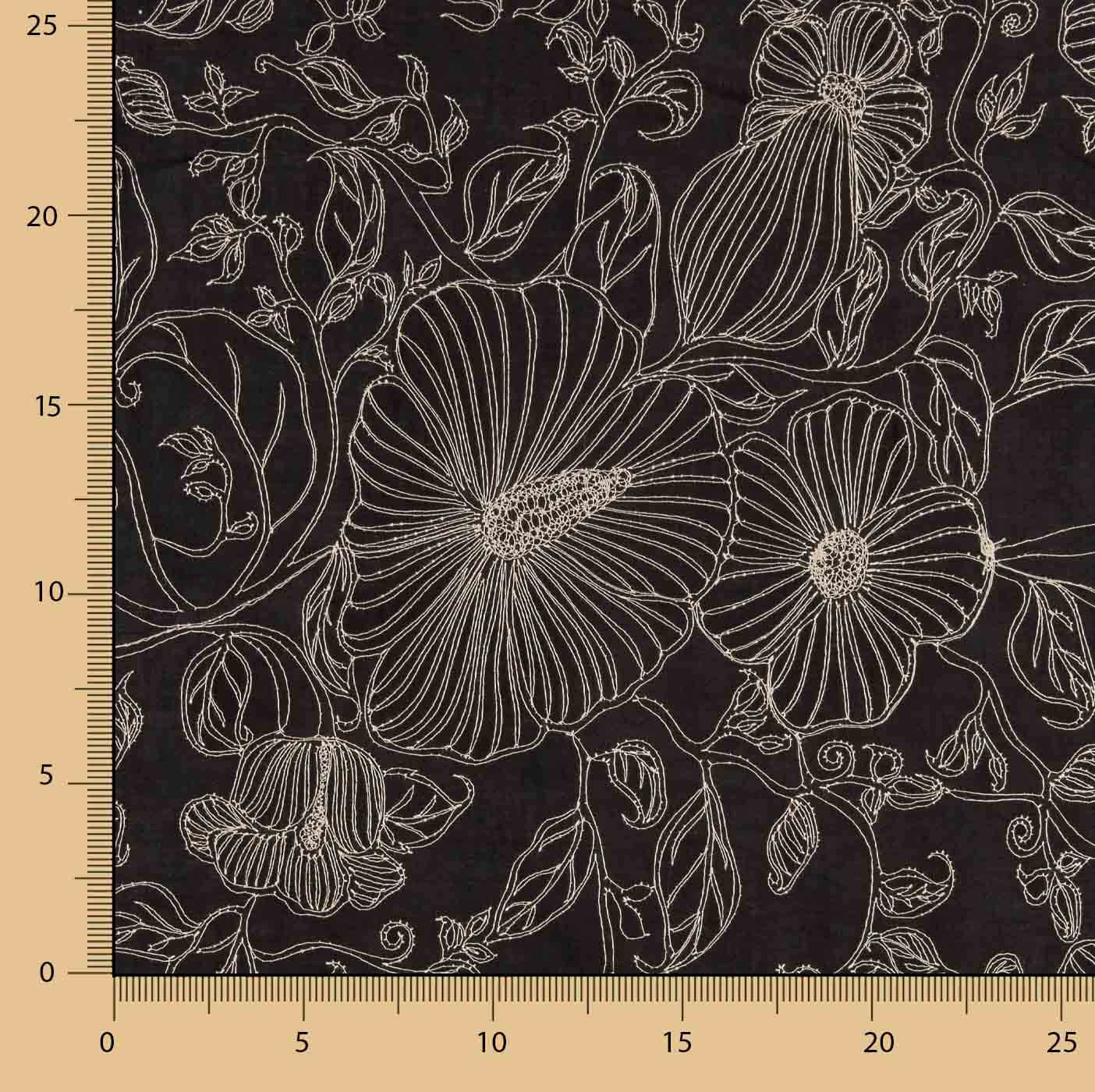 This fine voile-type plain fabric in black stands out for its elegance and delicacy, combined with ecru floral embroidery that adds contrast, sophistication and a high-quality handcrafted finish. Made from 100% cotton, it is a lightweight, breathable and soft to the touch fabric, ideal for cool and comfortable garments. With a width of 140 cm, it is perfect for making blouses, shirts, flowing dresses, tunics, romantic garments and women's fashion projects, as well as for delicate decorative details. An embroidered voile that combines lightness, elegance and versatility.