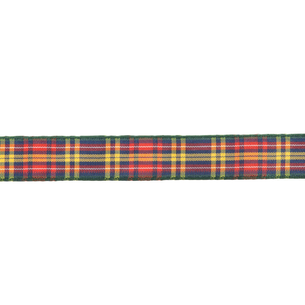 Checked polyester ribbon combining red, green and yellow, available in 15 millimetres width.Buy grosgrain ribbon for making bows, decorations and DIY. Price per meter 1 meter.