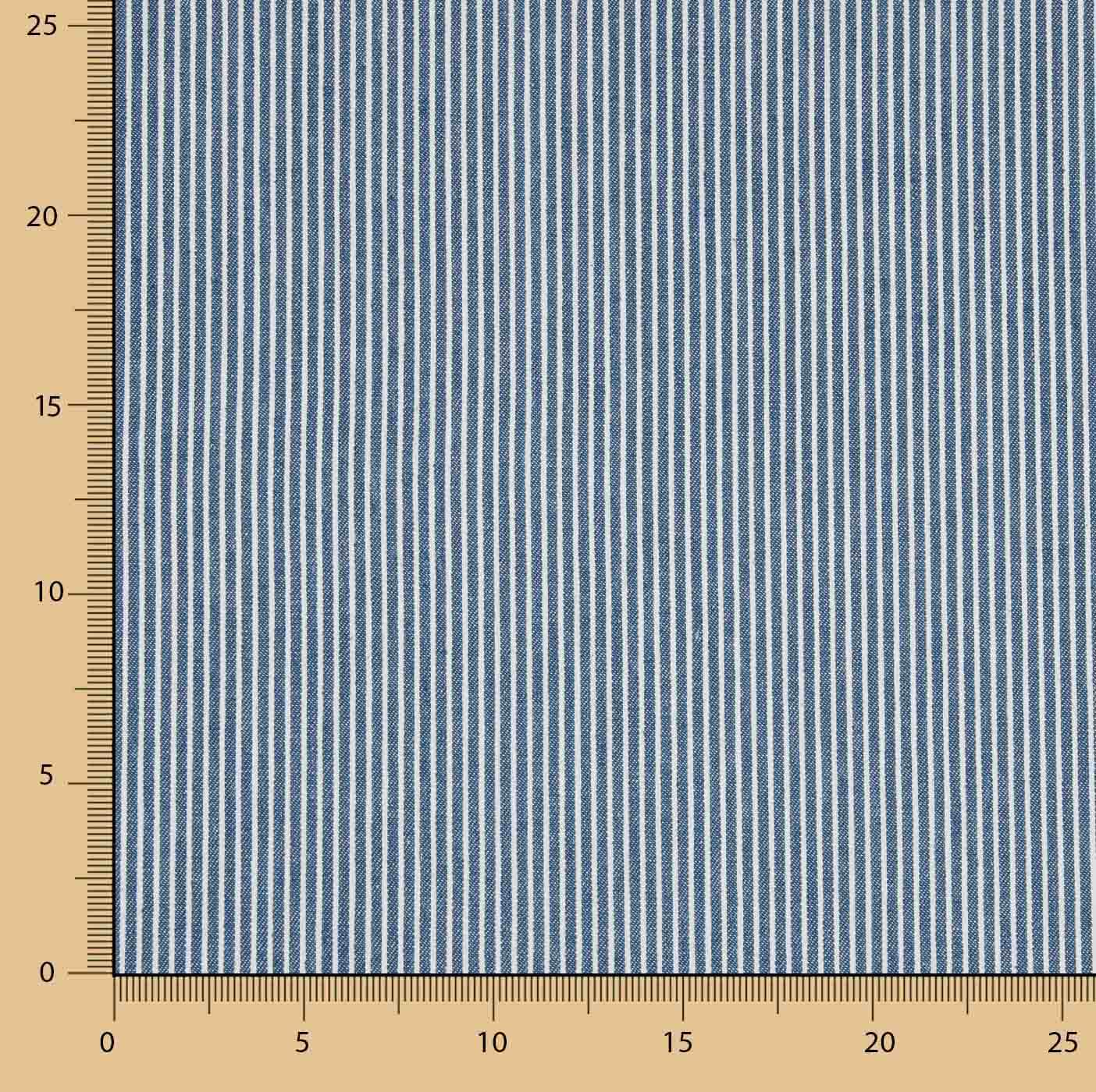 The Indigo Blue and White Striped Denim Cotton Fabric is a classic Texan-style fabric with a fine vertical striped design in indigo blue on a white background. A timeless and versatile print that gives a casual, nautical feel, ideal for modern garments that are easy to combine.