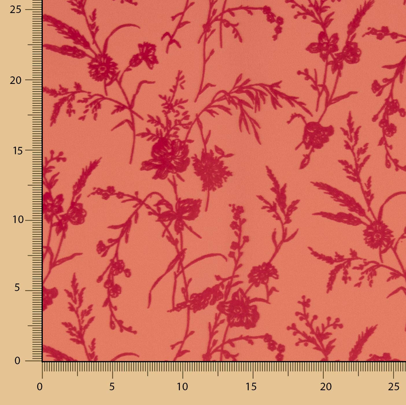 Coral Koshibo Crepe Fabric with Fuchsia Floral Flocking – Ribes & Casals Flamenco Collection