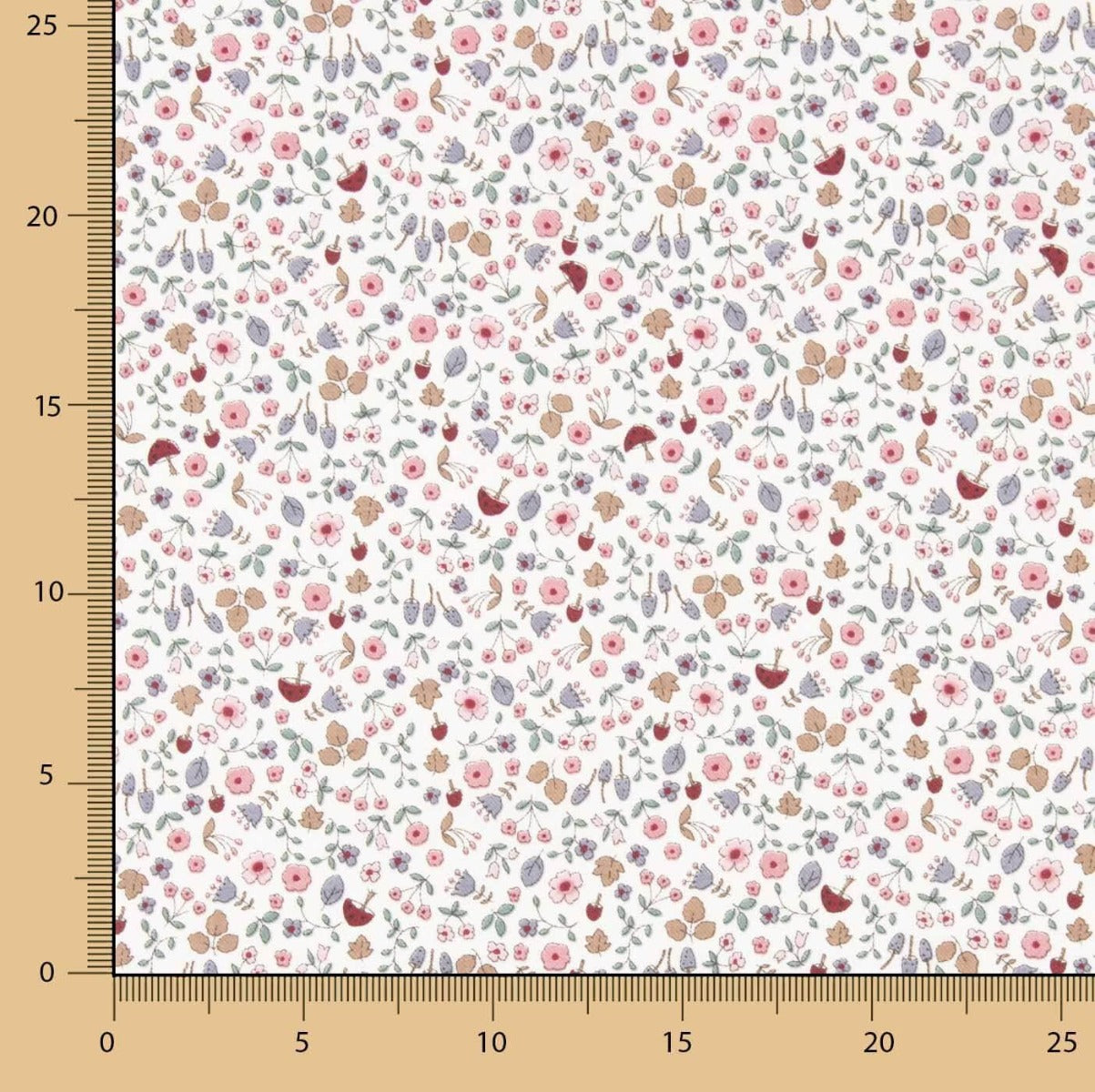 The “Organic Garden” Viyella is a printed fabric made from 100% organic cotton, 150 cm wide, with a fine, soft texture and a pleasant handfeel. Its delicate liberty-style floral design in mauve, dusty pink, pale blue and beige on a natural background makes it ideal for sewing shirts, blouses, dresses, skirts, children’s wear, pyjamas and accessories. Being made from certified organic cotton, it is a sustainable and skin-friendly choice, highly recommended for eco-friendly projects and conscious fashion. Lightweight, breathable and with a beautiful drape, this Viyella is perfect for mid-season wear and for those seeking softness with a natural style.