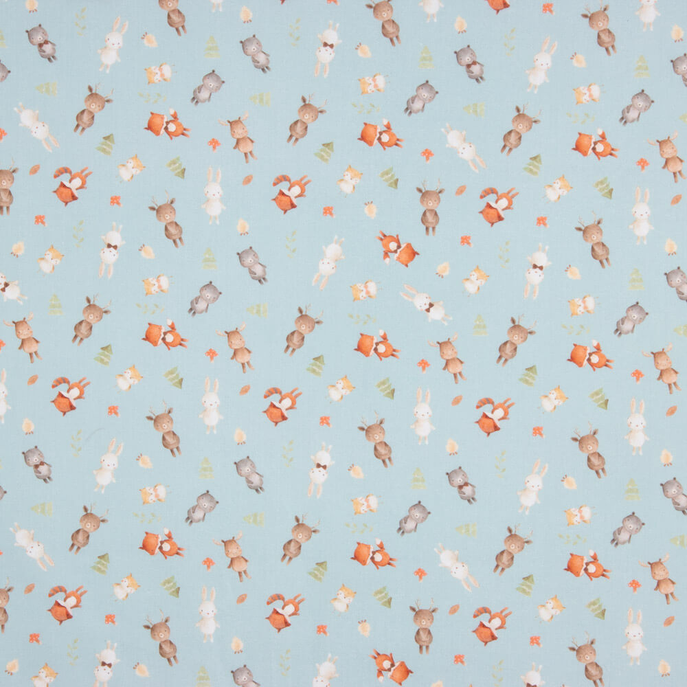 Cotton kids fabric kids fabric with sage deer pattern. Very soft and pleasant to the touch fabric with a plush texture, perfect for mid-season garments, accessories and kids fabrics.