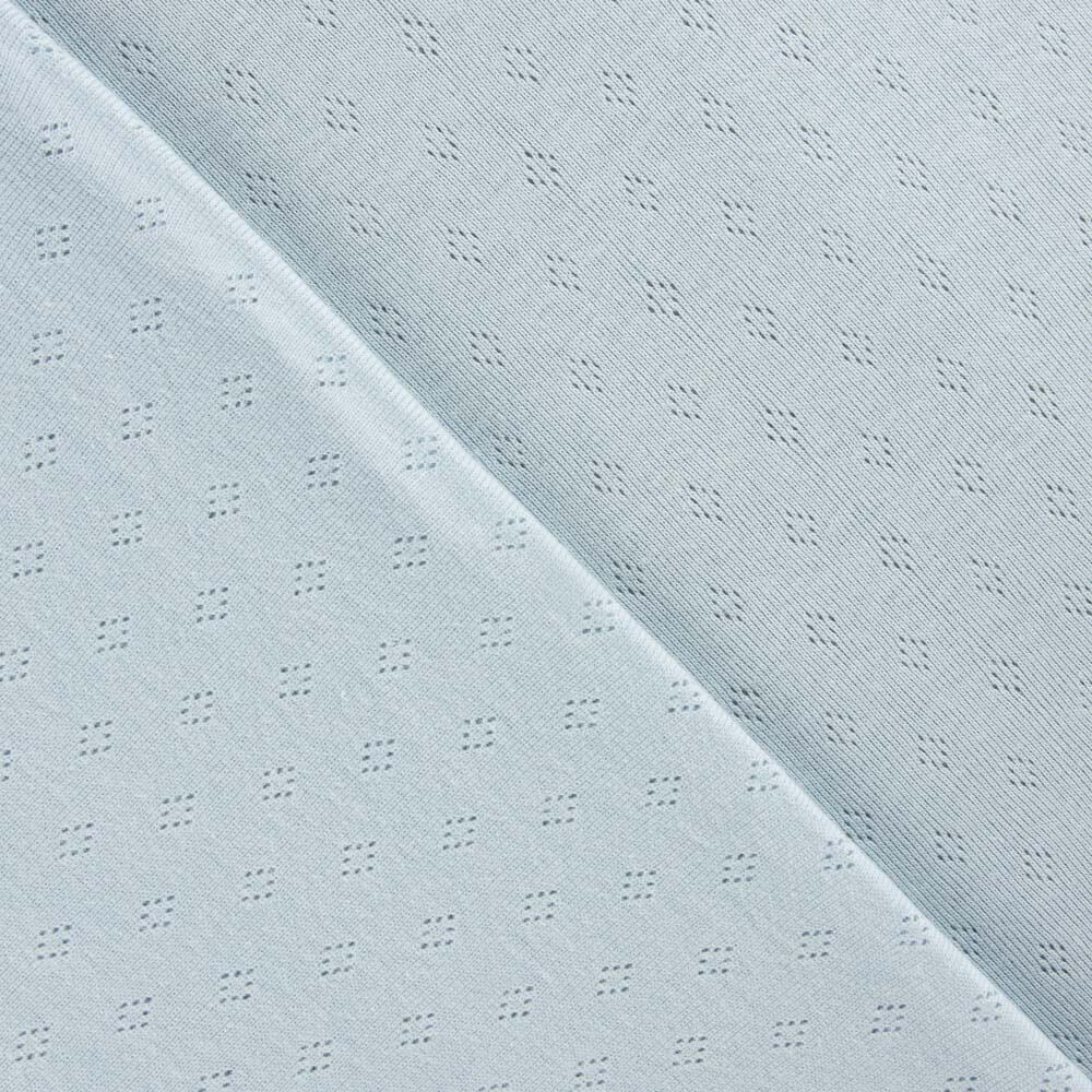 Jersey knit in grey cotton with a very soft ribbed Pattern and a small openwork, creating a geometric pattern. Perfect for sewing vests, bodysuits and all types of tight-fitting garments.