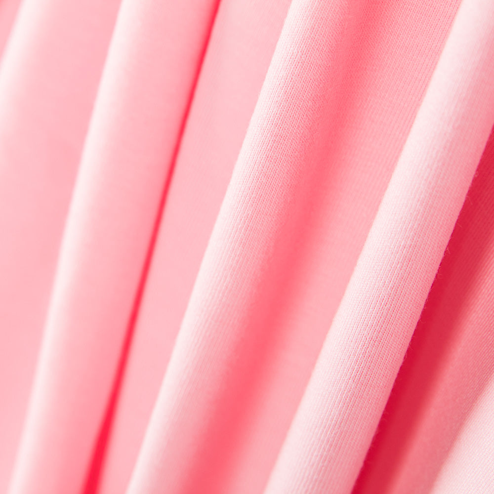 Punto elástico de algodón orgánico de color rosa con certificado OEKO-TEX y GOTS (Global Orgánic Textile). Contiene un porcentaje de elastano que proporciona mayor comodidad y confort a las prendas. Punto para confeccionar camisetas, vestidos, faldas y pantalones, así como todo tipo de prendas ajustadas.