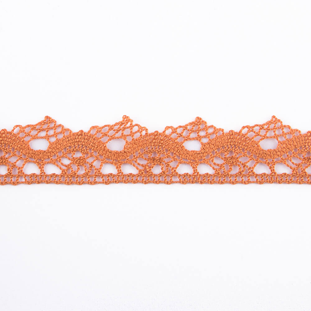 Clay brown guipure embroidery ribbon. Wave shaped guipure embroidery ribbon , 3 cm width at its widest part and 2.3 cm at its narrowest part. Buy from 1 metre. ON SALE / Haberdashery Remnants.
