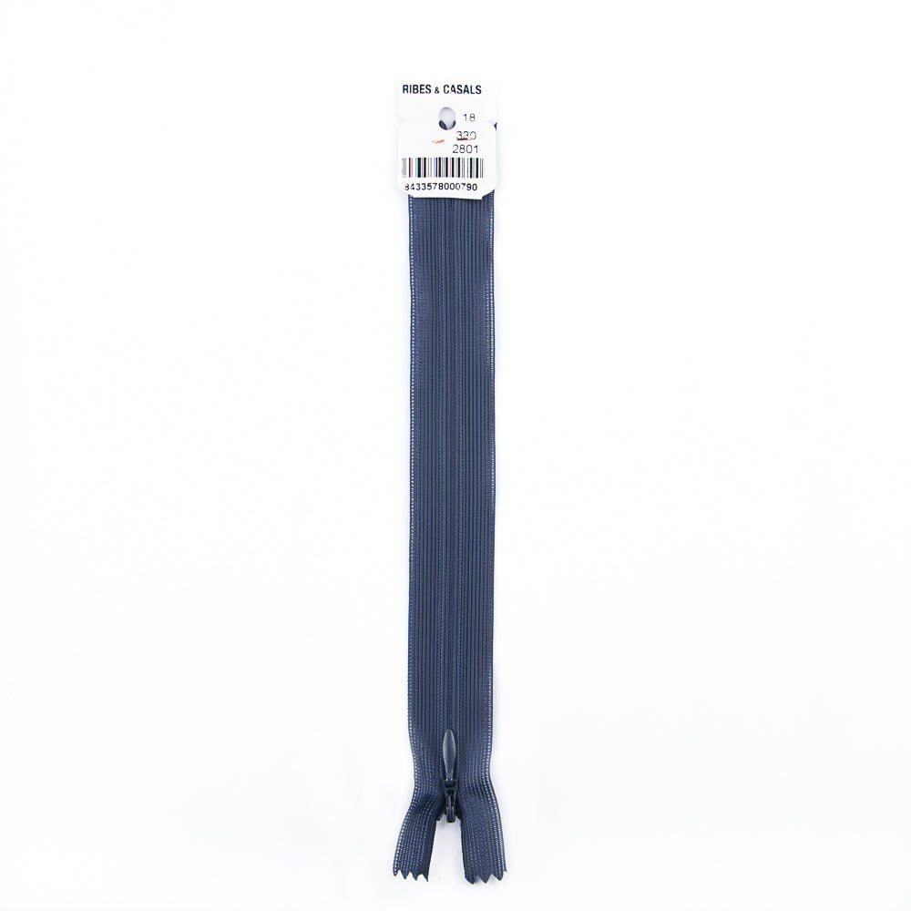 Cremallera invisible disponible en tamaños de 18, 35 y 60 centímetros en color azul marino.