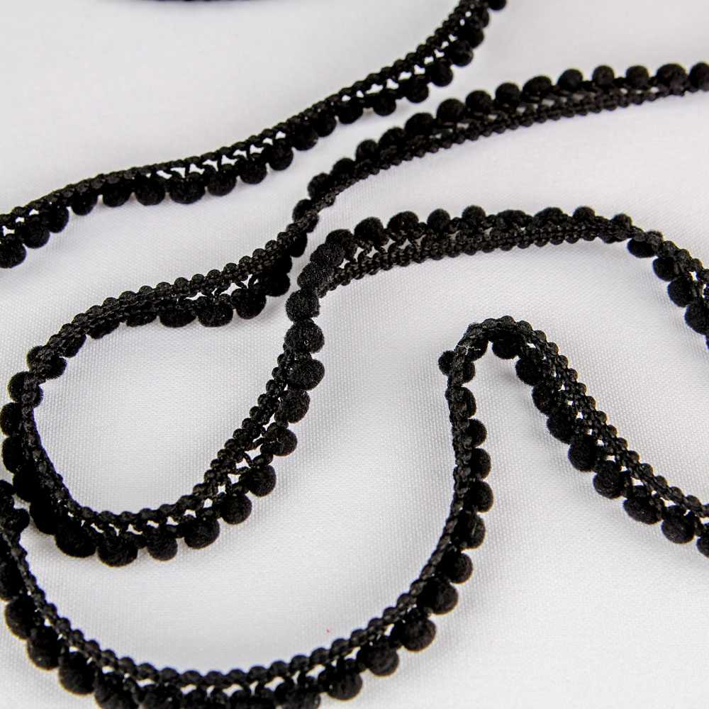 Pompom Trim Mini black. Buy your haberdashery online and your pompom trimming by the meter. Small pompoms in foam of 10 millimeters. Ribbon for ornaments and decorations, and flamenco sewing.