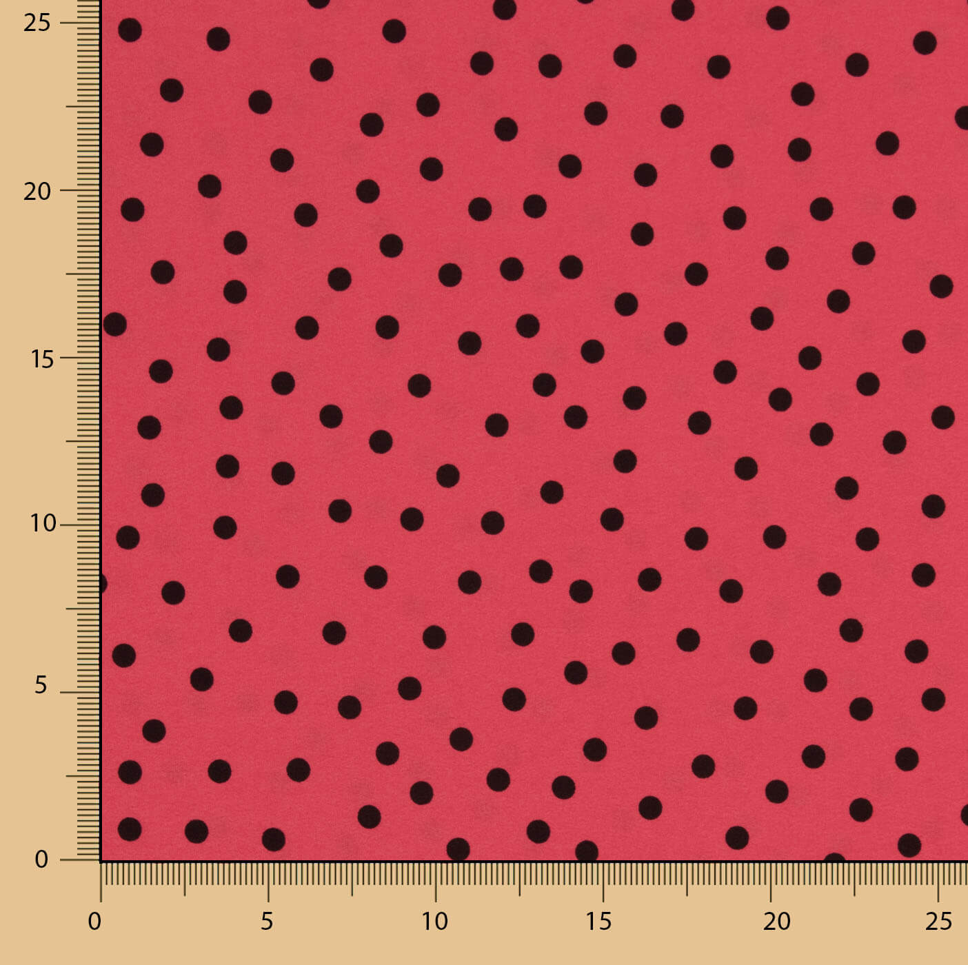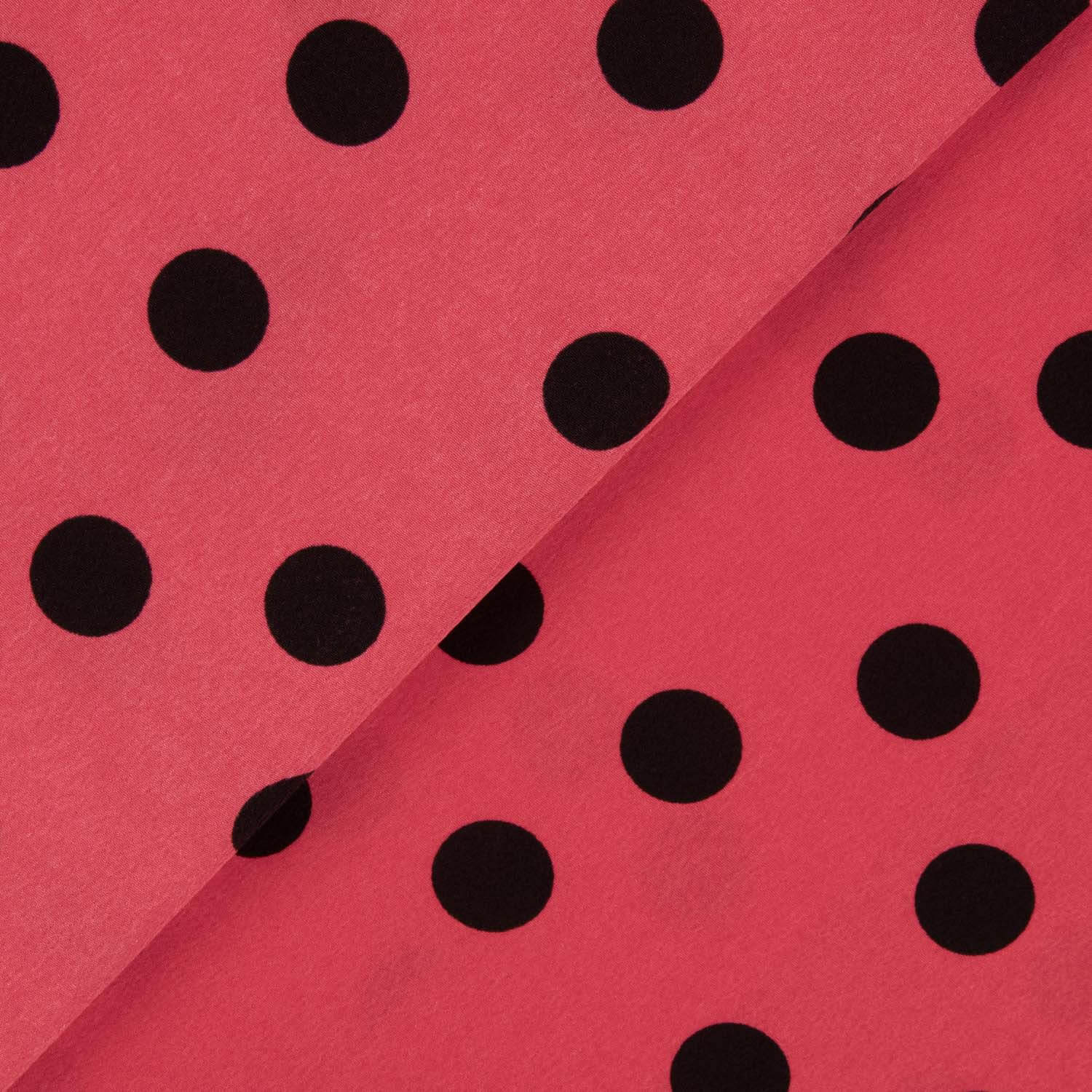 The Koshibo fabric with 17mm polka dots on a strawberry-coloured background and black polka dots is an ideal choice for making fashionable garments with drape, comfort and style. It is a smooth, fine polyester fabric with a soft feel, highly appreciated for its fluidity and resistance, perfect for warm climates and feminine designs. With a weight of 130 g/m² and a width of 150 cm, Koshibo is easy to work with and offers excellent performance in clothing projects. Its slightly grainy texture gives it a delicate finish, while its 100% polyester composition ensures durability, easy ironing and low maintenance. Ideal for blouses, skirts, loose dresses, flowing trousers and nightgowns, it is an essential staple for any wardrobe.