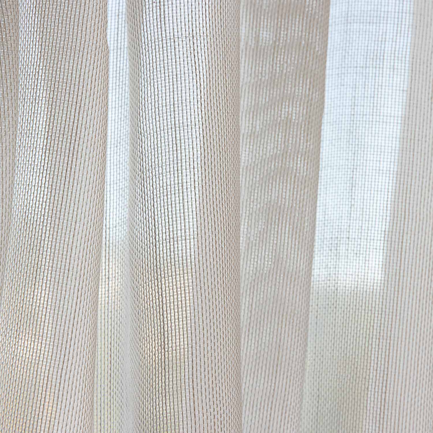 Tela de visillo con trama imitando al panamá de color piedra. Tela visillo con bajo acabado en cinta de plomo de color blanco estilo etamin. Tela de poliéster 100% en un práctico ancho de 280cm. Es una tela de visillo translúcida con buena caída para confección de cortinas. Debido a su composición, es un tejido de muy fácil mantenimiento. No encoje y puedes lavarla a máquina a 30º con un centrifugado suave. Si cuelgas las cortinas húmedas, con el propio peso quedarán perfectas sin necesidad de planchado. Se recomienda no utilizar suavizante. No admite secadora. La tela ya viene acabada en uno de los orillos del ancho con un cordón de plomo, que sirve de peso, listo para utilizar como final del bajo de tus visillos. para decoraciones de Hogar.
