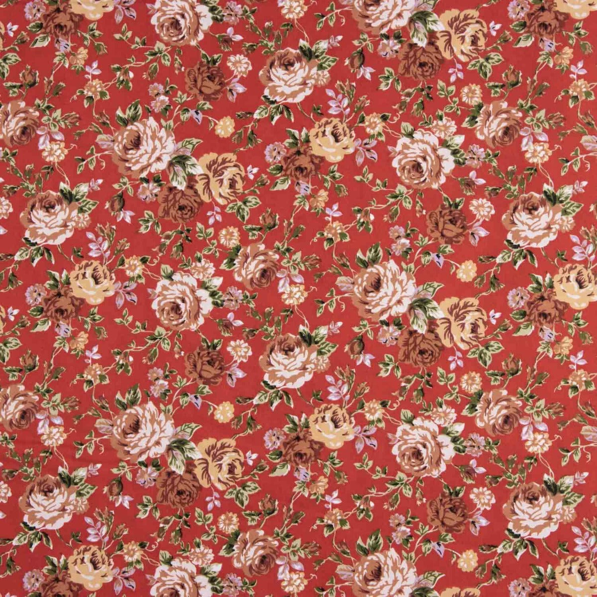 This striking 100% cotton poplin fabric, 150 cm wide, stands out with its bold red background decorated with a romantic print of large roses in shades of blush, terracotta and cream, accented with delicate green leaves. A fabric full of character and elegance, it is ideal for dresses, skirts, shirts, children’s wear or even decorative accessories with a vintage charm. Soft, breathable and easy to sew, it is a versatile choice for creative sewing with a distinctive style.