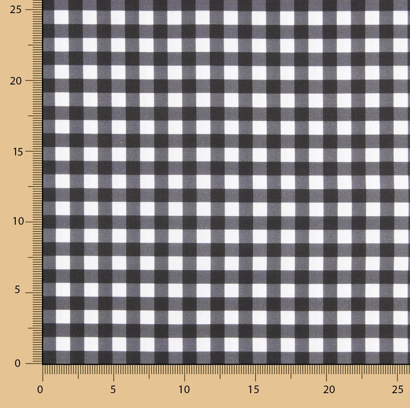Medium black square printed percale made from 100% cotton and woven in 200 thread count percale, which guarantees softness, freshness and excellent resistance. It features a digital checkered print in shades of black and white, with an approximate size of 1 cm per side, ideal for clothing and textile decoration.