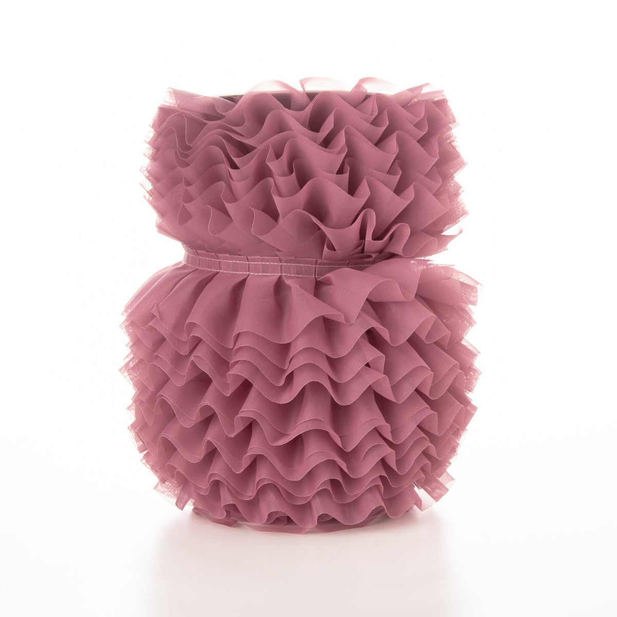 La cinta plisada garrucha en color rosa ruibarbo es el complemento ideal para aportar un toque sofisticado y original a cualquier diseño.