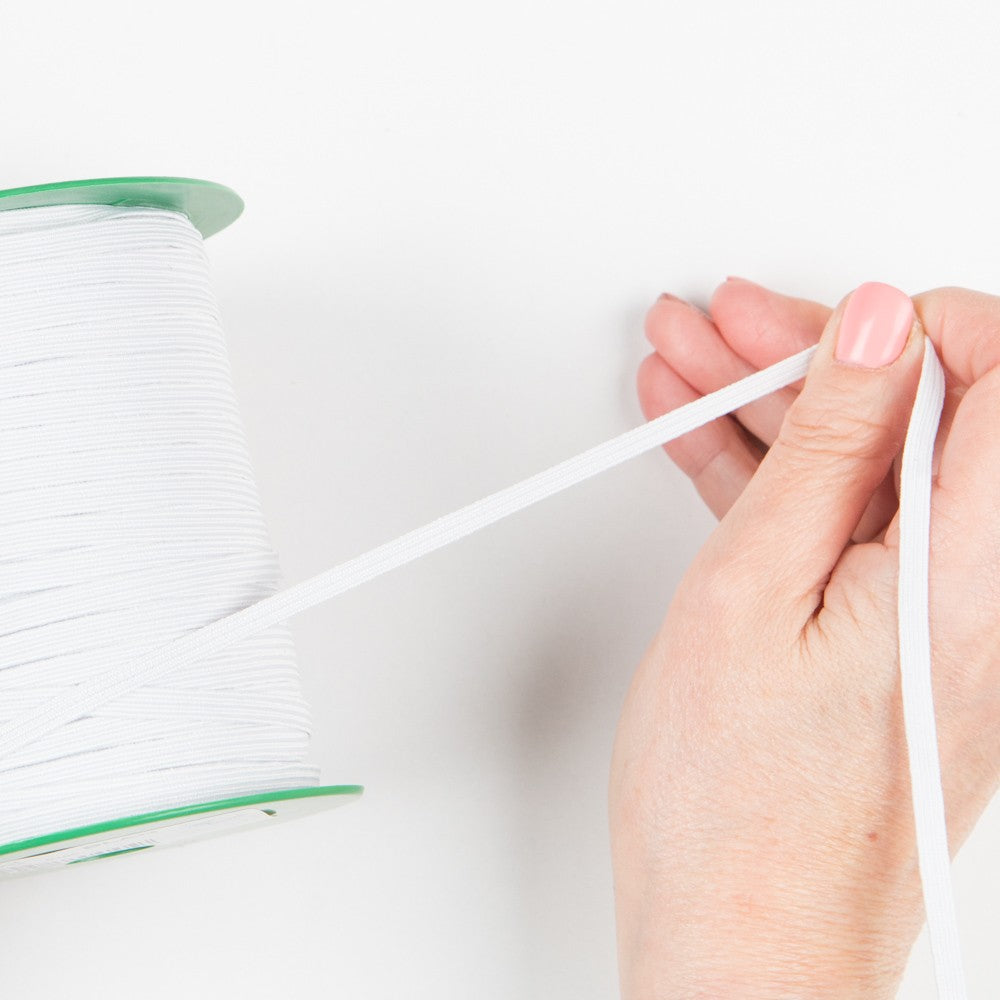 5mm braided elastic band for underwear. Rubber of great quality, useful for several applications, such as shoelaces for children's sports shoes. It provides great strength and it's soft and pleasant to touch. Available in two shades: White and Black.