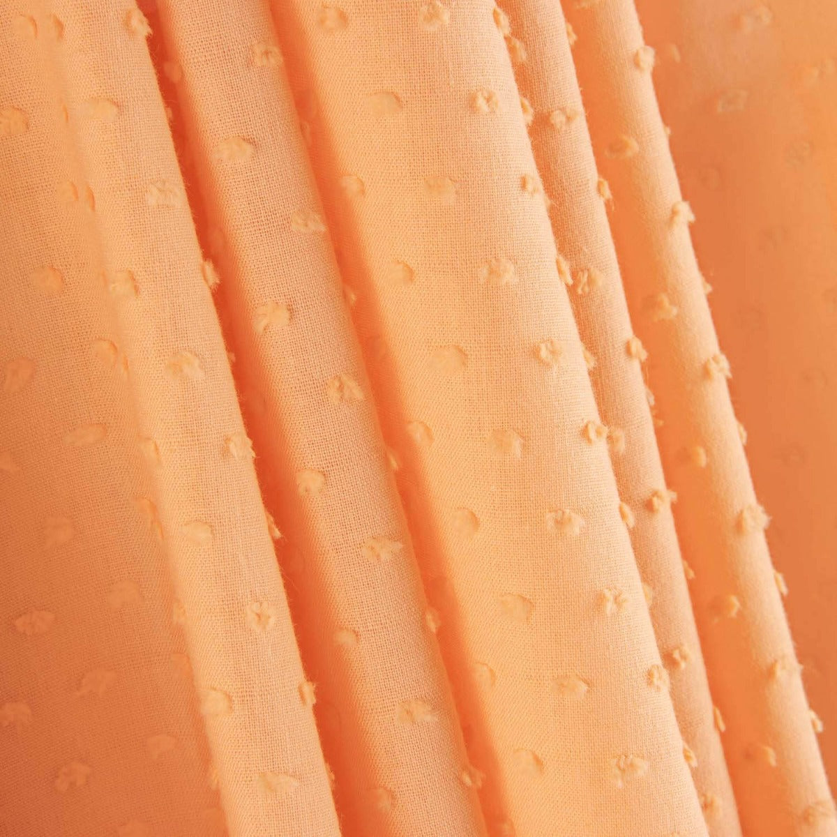 Our Swiss Dot Cotton Batiste in 100% cotton in Salmon Orange is a lightweight, fresh fabric with a warm touch, perfect for cheerful and elegant creations. It features small embroidered dots (plumeti) spaced 1.3 cm apart, in the same salmon orange tone, achieving a subtle and harmonious effect. With a weight of 107 g/m², it offers a light drape and a very pleasant feel on the skin, ideal for blouses, dresses, skirts, children’s fashion, layettes, baby garments, occasion wear and light decoration. For sewing, we recommend using fine needles (60/8 – 70/10) and delicate finishes such as French seams or narrow overlocking. It can be combined with lightweight linings such as plain batiste or cotton voile to add opacity. Its salmon orange tone adds warmth and vibrancy, perfect for summer garments, children’s fashion and decorations with a fresh and luminous feel.