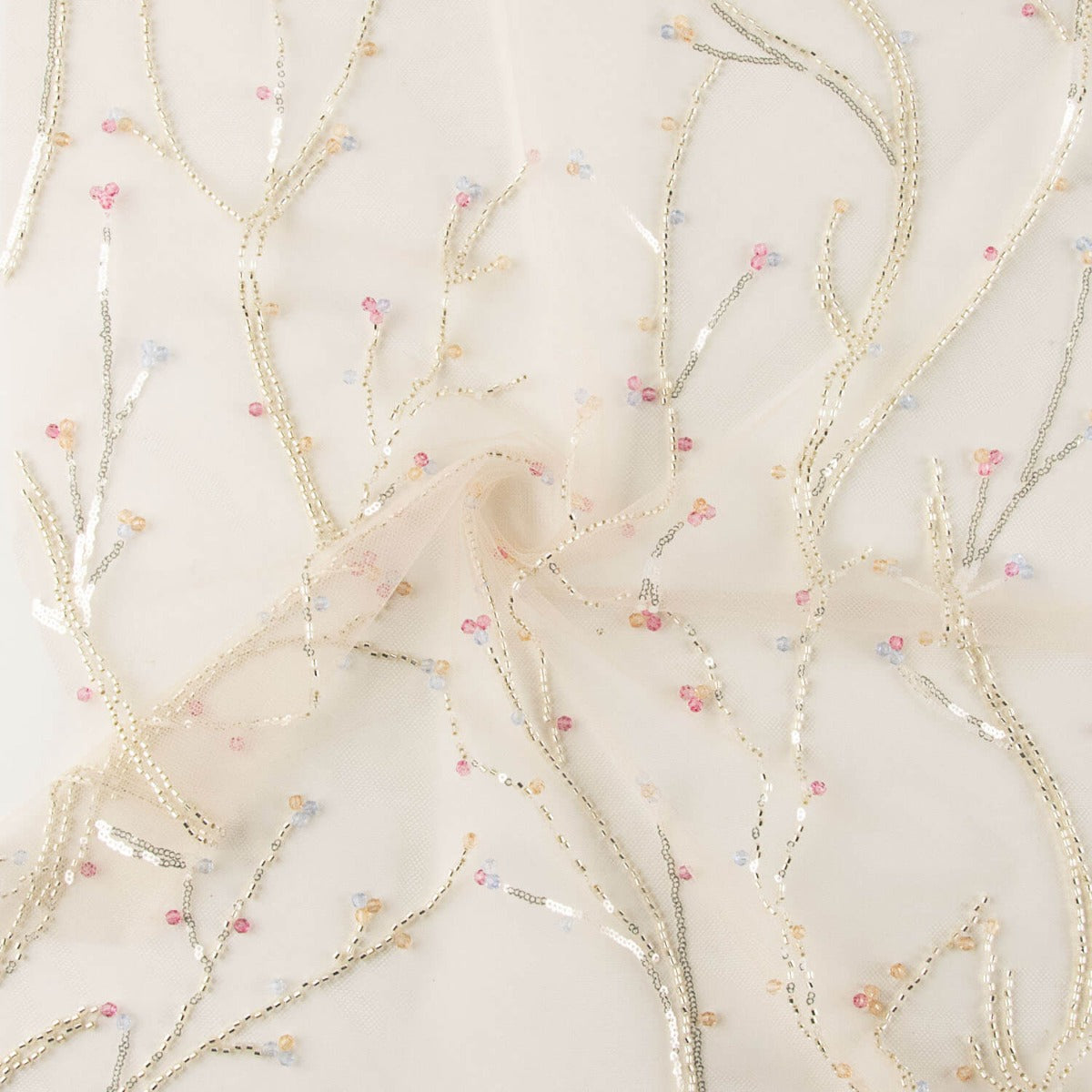 Tul Bordado Árbol Canutillo Nude - Ribes y Casals