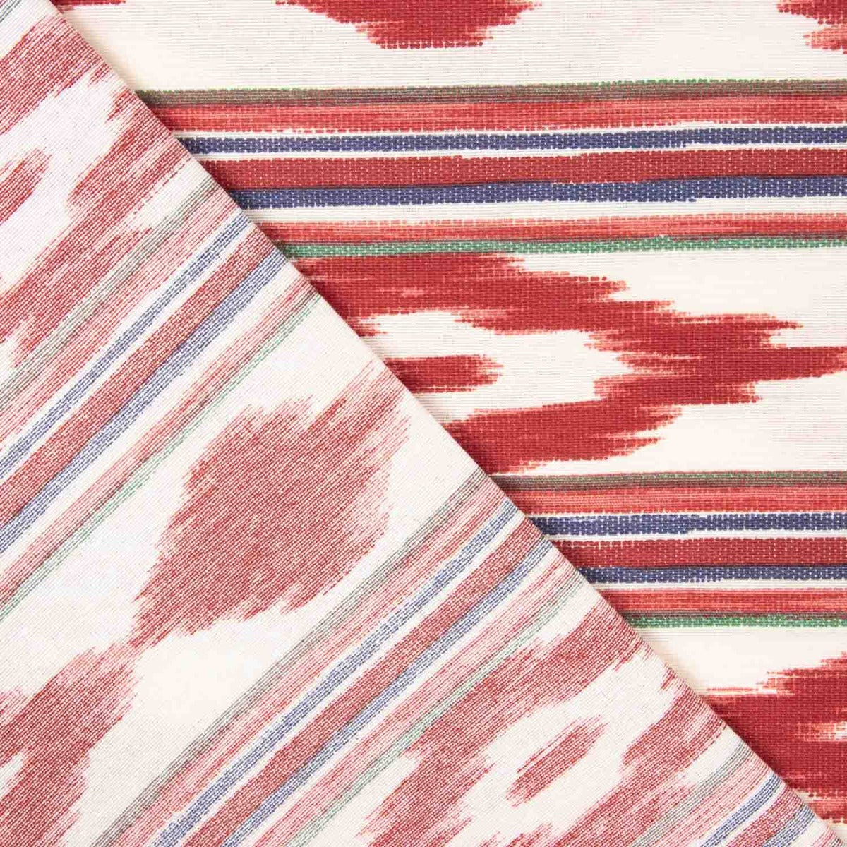 Fabric with red Mallorcan patterned and white background. Totally opaque, soft and dropping canvas, high resistance to rubbing. Mallorcan print ideal for making cushions, upholstery chairs, armchairs and sofas, as well as curtains and tablecloths. It is also ideal for making bags, backpacks and even covers and bedding.