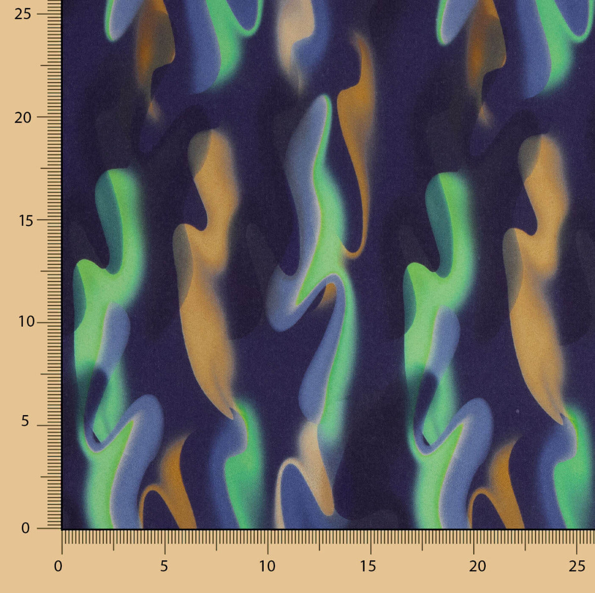 Softshell print fabric in navy tones. Softshell is a two-sided technical fabric. Opaque fabric, supported and with body. The outer side is smooth with a special finish that repels water and the inside is slightly fluffy, similar to polar fleece. It is a "technical" fabric characterised by its ability to provide warmth to garments, insulating them from the cold and damp. Softshell is used for jackets and outdoor sportswear, which act as a mackintosh and windbreaker. Comfortable and comfortable fabric, which adapts perfectly to movement.