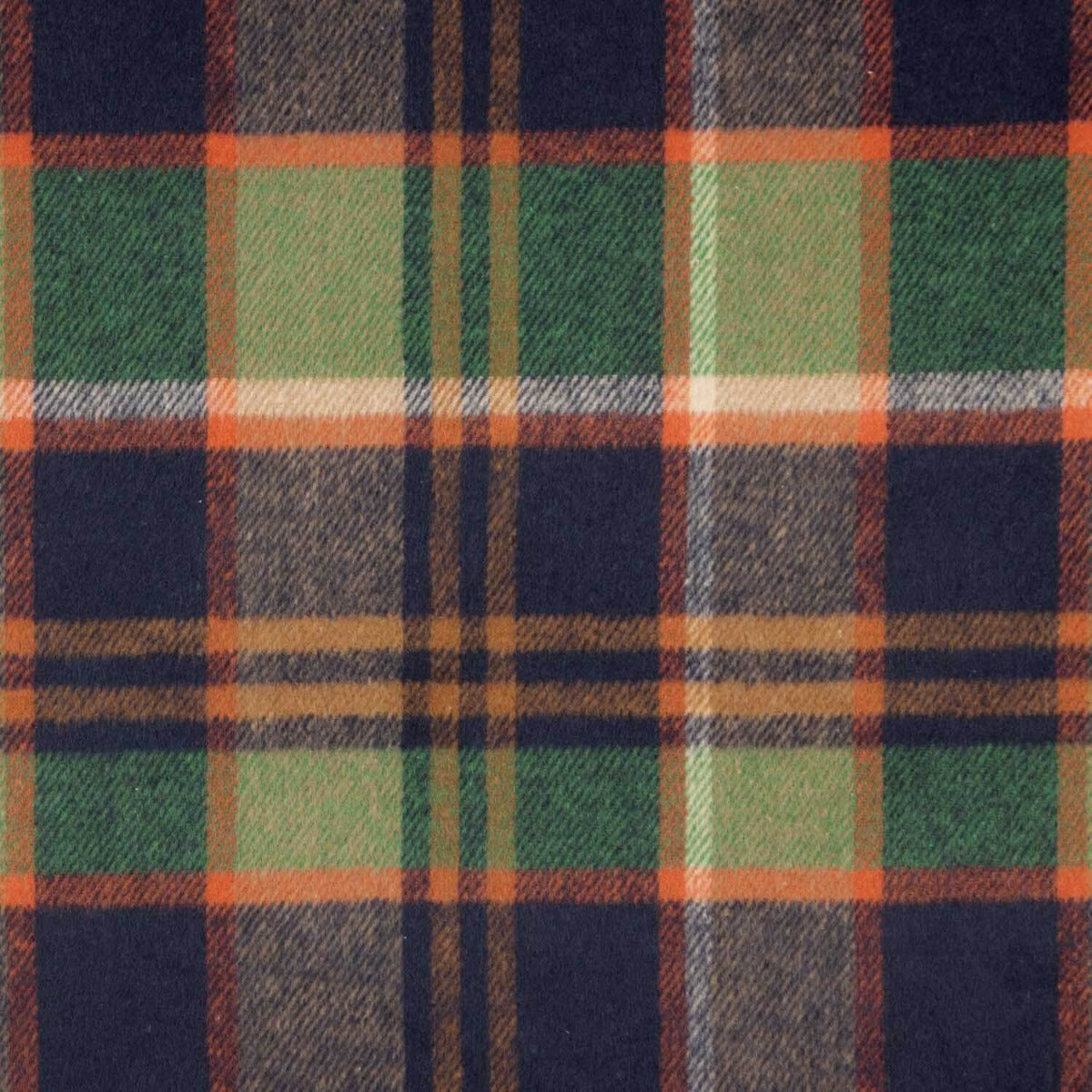 Mouflon fabric with a large check pattern in forest green, pumpkin orange, brown and navy blue – an autumn-inspired design that brings warmth and rustic charm. Made from a blend of 40% polyester – 40% acrylic – 20% wool and measuring 150 cm wide, this fabric is ideal for outerwear with personality. Mouflon is a soft, warm and structured cloth, perfect for jackets, coats, capes, ponchos, overshirts or even decorative throws and cushions. Its fibre blend guarantees durability, daily wear resistance and easy care, helping the fabric maintain its good looks over time. With its bold colour contrast, this design is perfect for those seeking a versatile fabric that merges classic style with a modern, bold edge.