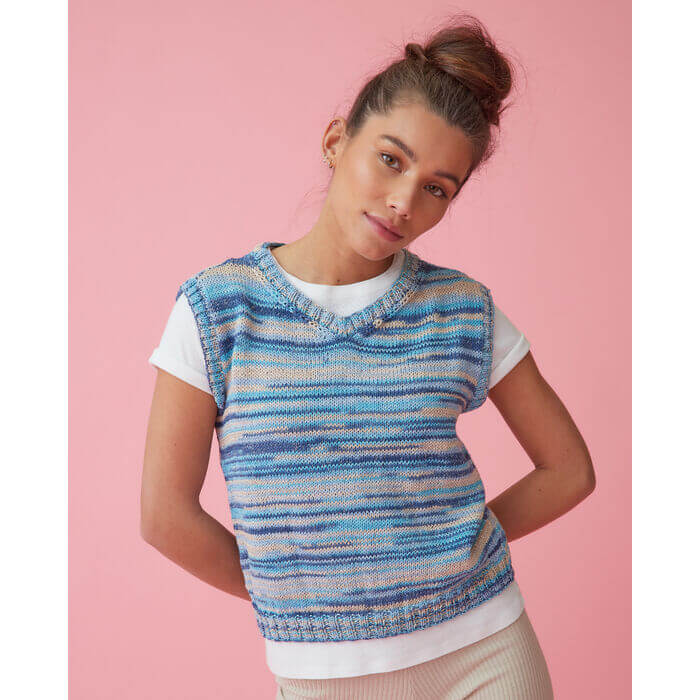 Pingouin Festival collection yarn, multicolour cotton yarn with a thin sheen. Perfect for knitting a variety of spring garments, dresses, tops, accessories. Available in different colours. yarn of 50 grams and +/- 135 metres. Buy 9 yarns to knit a size 42 jumper, 6 yarns to knit a size 6 jumper.
