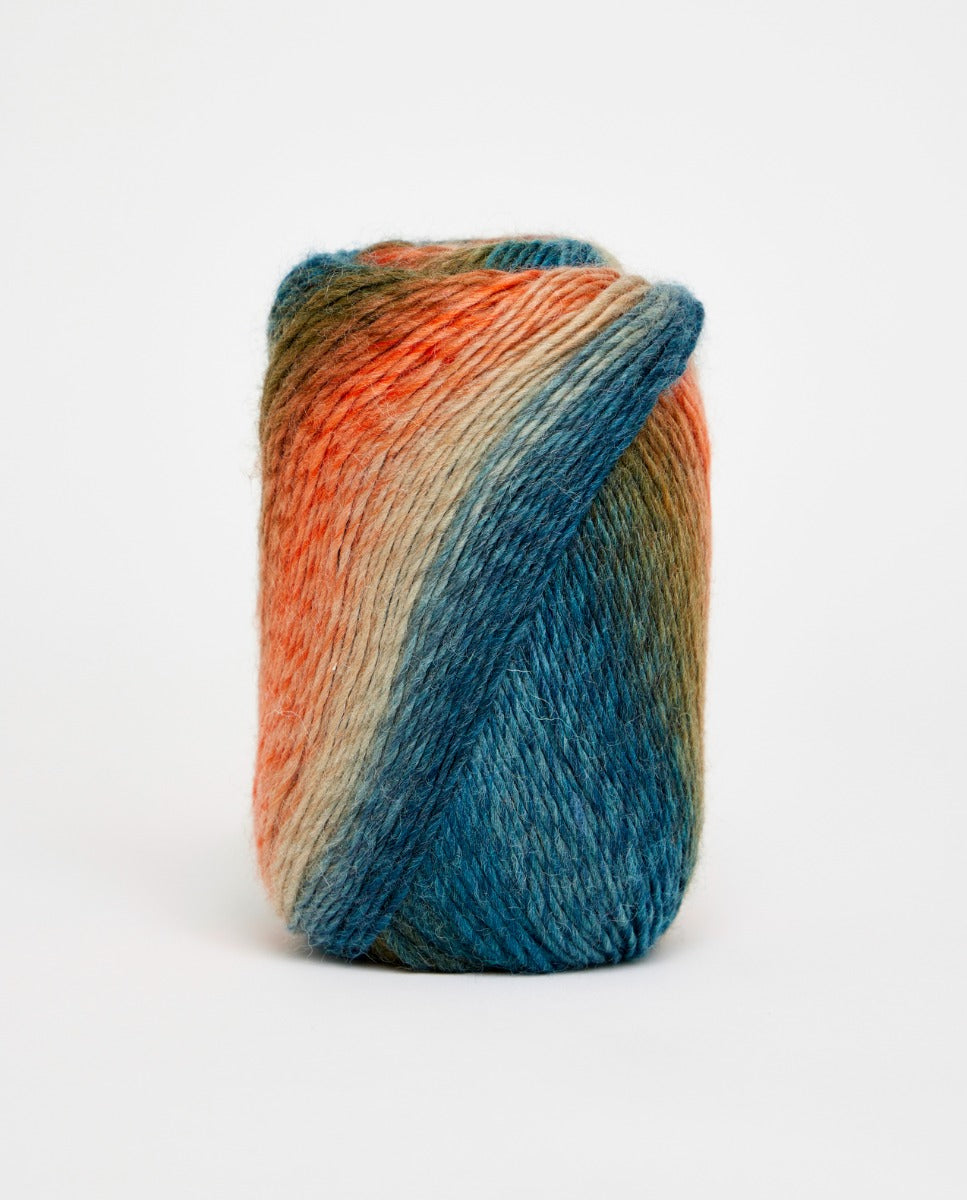 A curious yarn by Pingouin, Happy collection, combining a nice gradient of colours. Perfect to make original and coloured creations for autumn-winter. You will need only one yarn to knit an accessory, and 4 yarns to knit a pullover with size 4,5 needles. yarn of 100 grams and +/- 270 metres. Buy 4 yarns to knit a size 42 jumper, 2 yarns for a size 6 years jumper, 1 yarn for a size 3 months jumper.