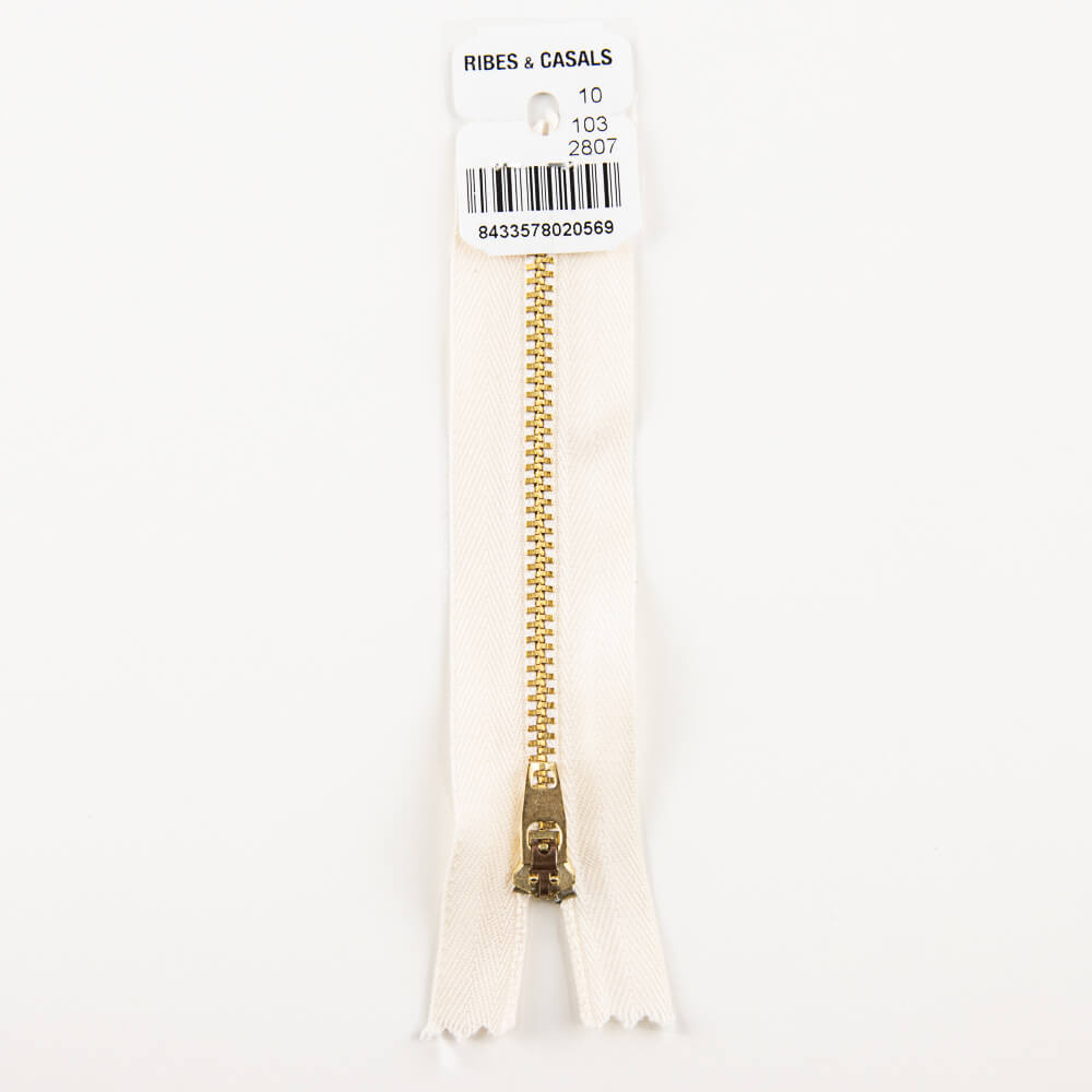 3 mesh zip with gold metal teeth on raw mesh. Very durable zip, ideal for jeans, bags and other applications requiring extra strength. Available in various sizes, priced per unit.