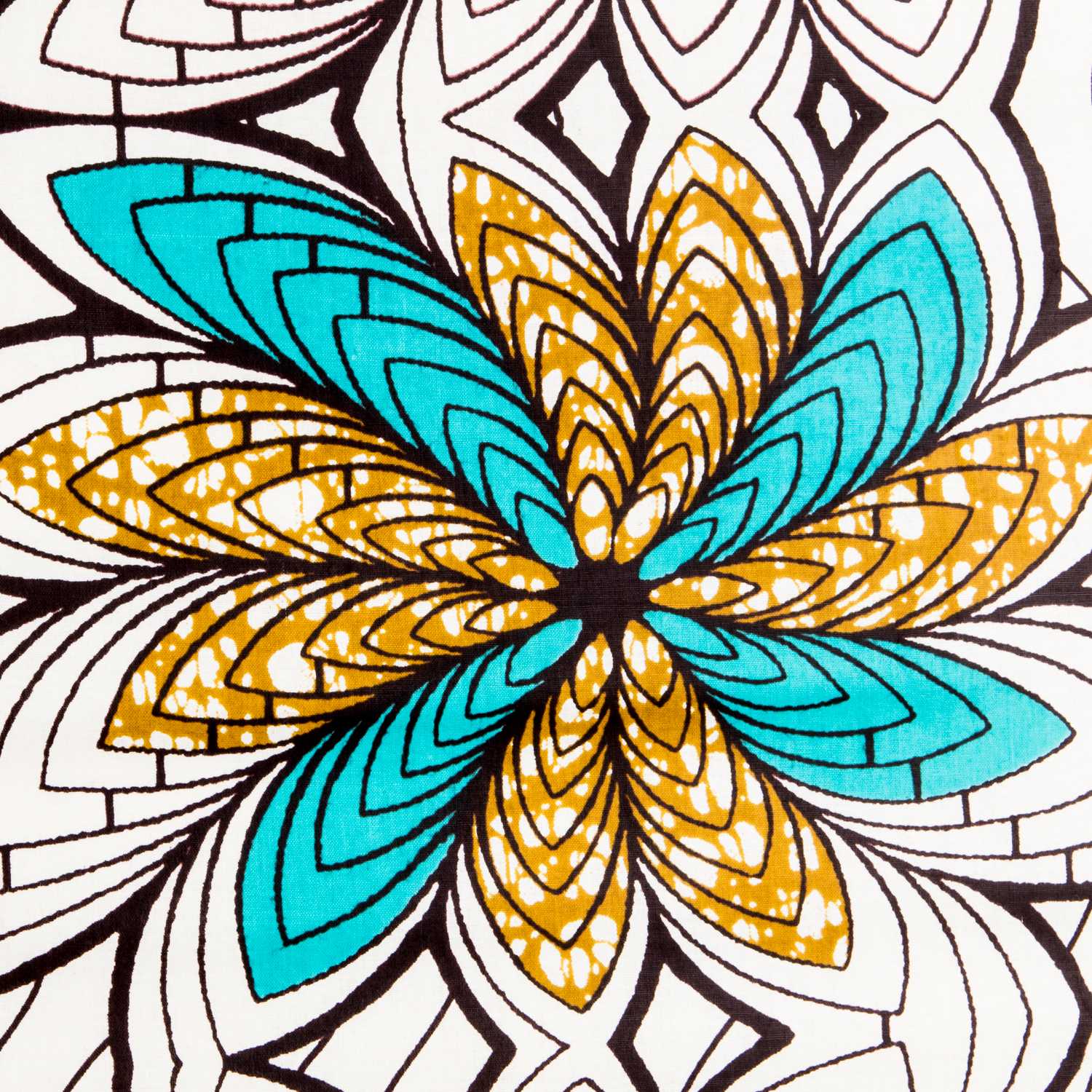 WAX african fabric with ecru and turquoise spirals. Cotton fabric with a WAX African printed very soft and shiny, thin and with some kind of drape. The WAX ??fabric is perfect for making dresses, bags, totebags, dresses and summer shirts, African tunics, harem pants and all types of African style decoration.