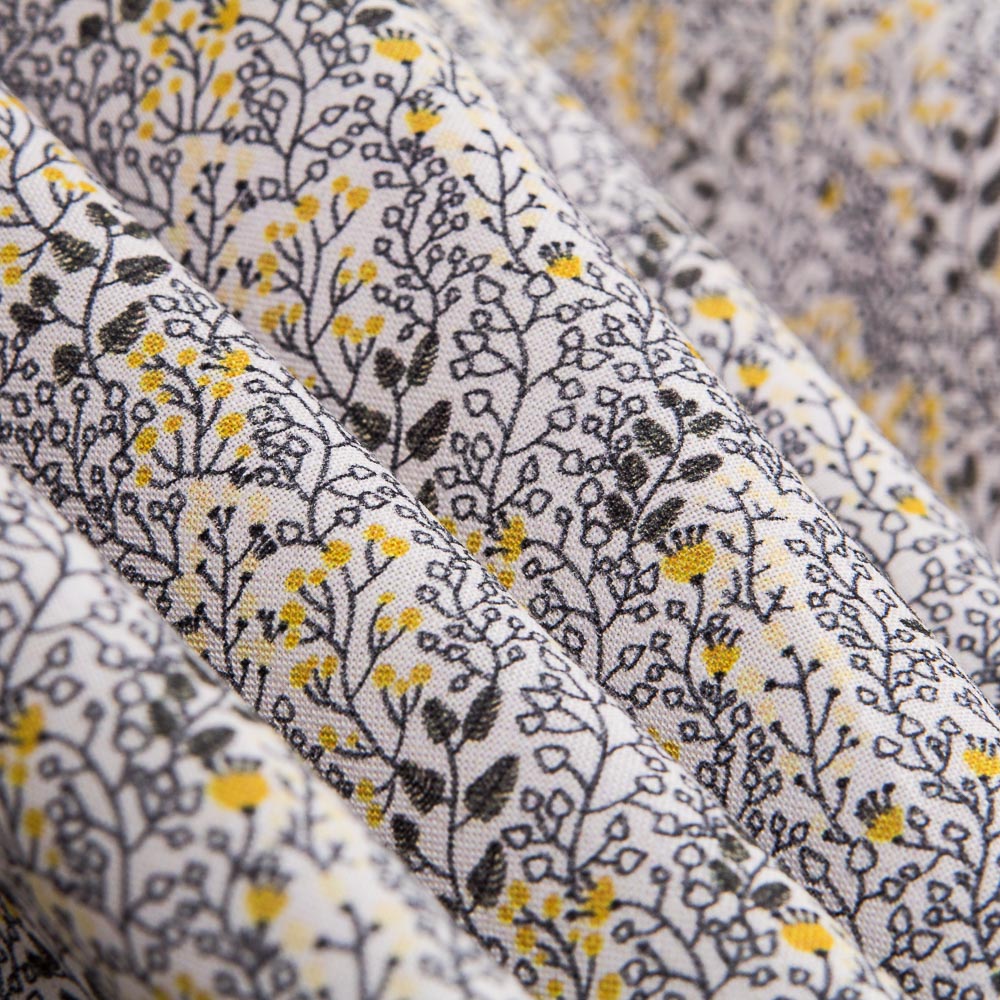 Algodón estampado tipo percal con estampado hierbas albero . Tela de algodón orgánico certificado por ICEA de gran calidad, sostenida y suave. Popelín ideal para confección de sábanas, cojines, cortinas y accesorios como neceseres, fundas y bolsas. También es perfecta para creaciones de patchwork y labores.