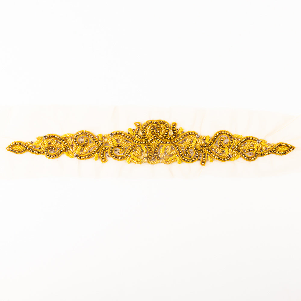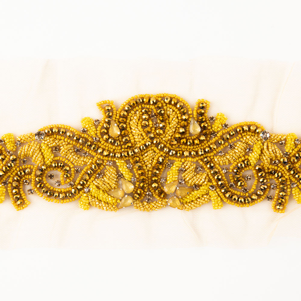 Aplique de piedras brillantes en tonos dorados y amarillos.