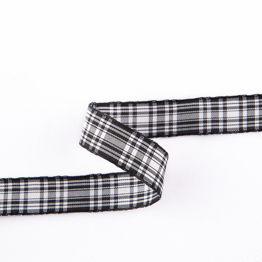 Checkered polyester ribbon in black and white, available in 15 millimetres width.Buy grosgrain ribbon for making bows, decorations and DIY. Price per meter 1 meter.