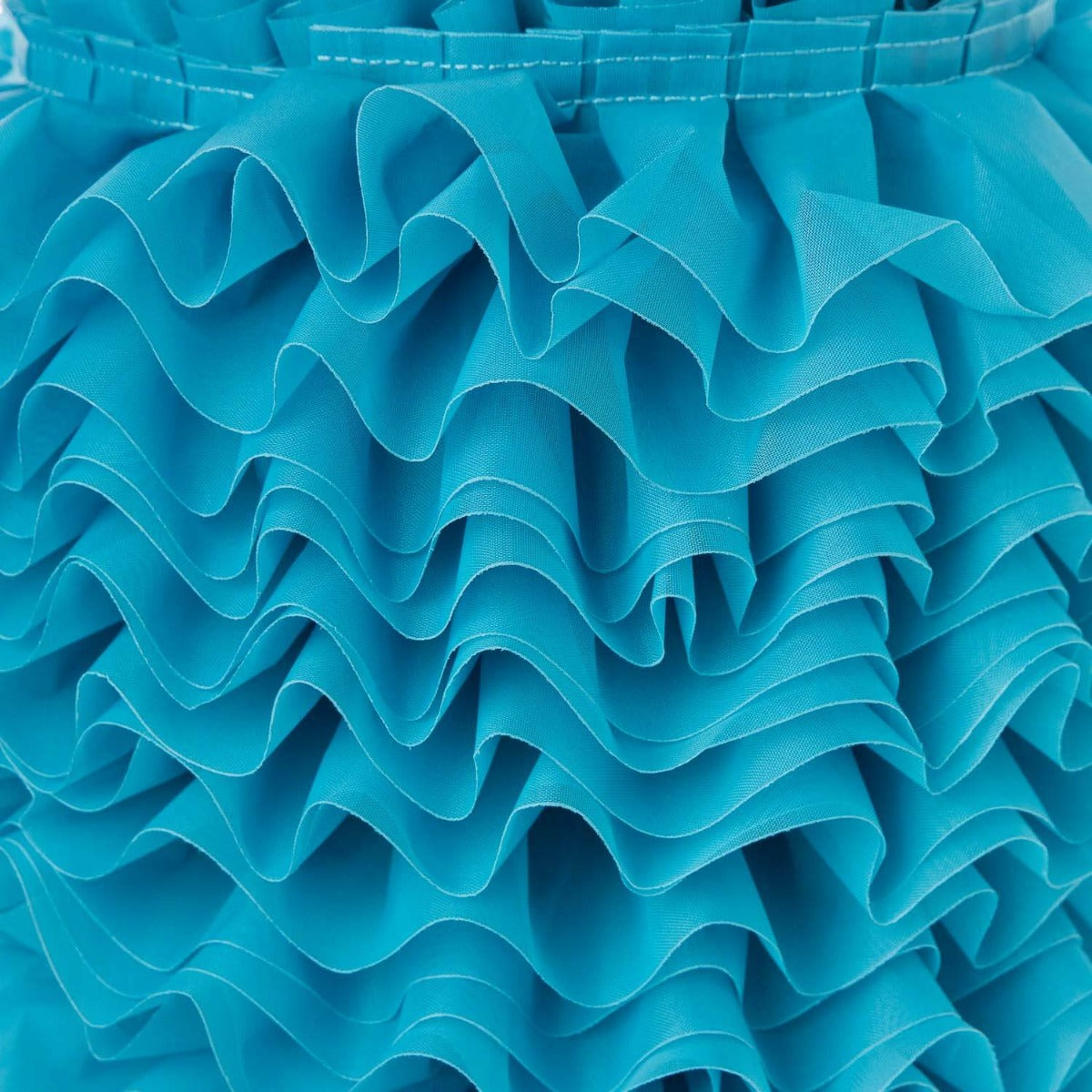 Con un ancho aproximado de 6 cm y confeccionada en 100% poliéster, su fruncido en tablas en la parte superior crea un efecto voluminoso y sofisticado.
