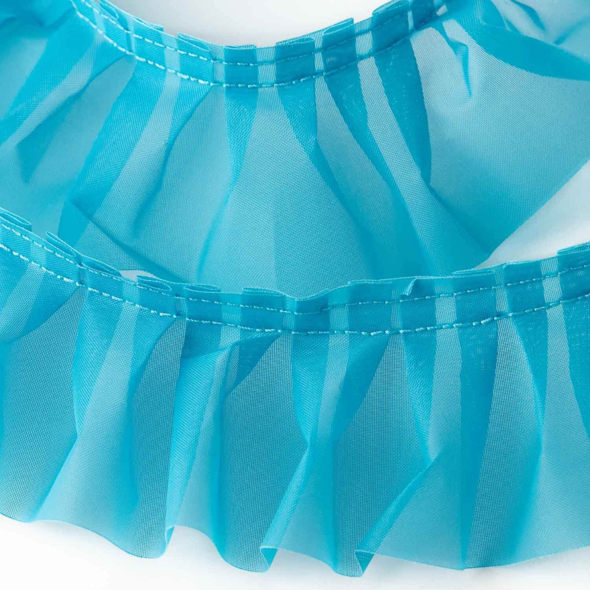 La cinta plisada garrucha en color turquesa es el complemento perfecto para aportar frescura y movimiento a cualquier diseño.