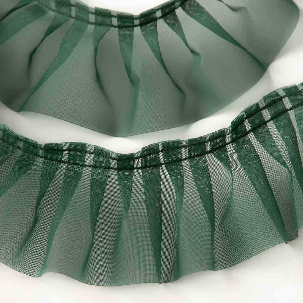 La cinta plisada garrucha en color verde es un complemento ideal para añadir elegancia y movimiento a cualquier diseño.