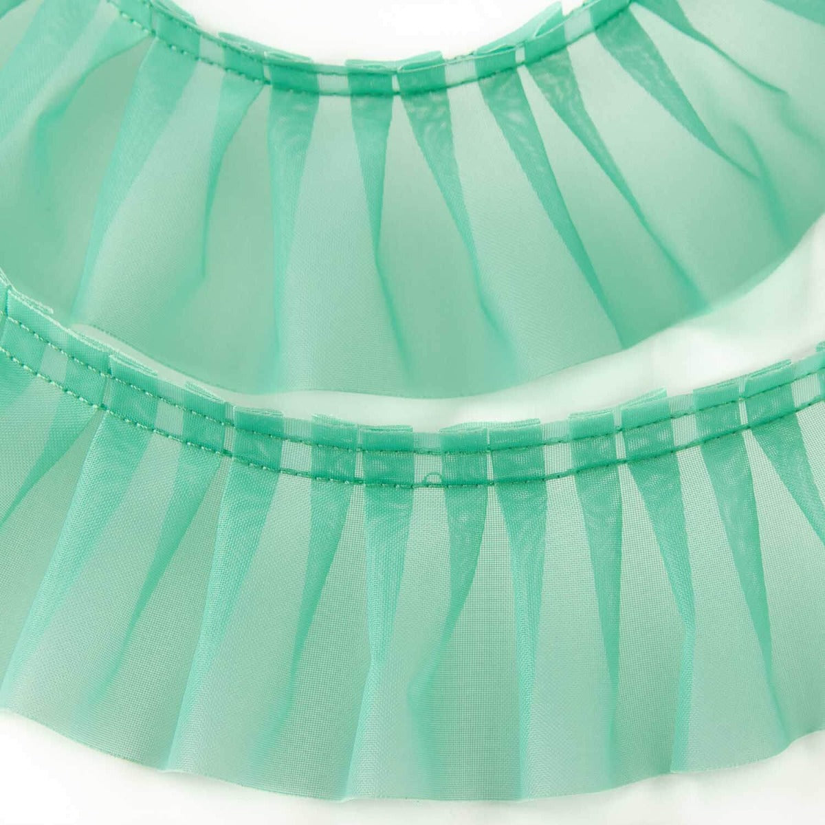 La cinta plisada garrucha en color verde menta es el complemento perfecto para aportar un toque fresco y sofisticado a cualquier diseño.