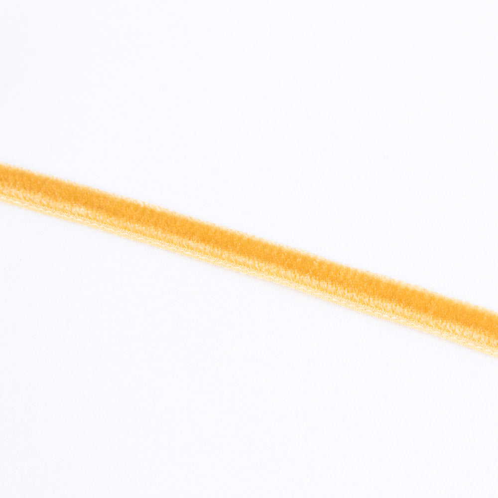 Cinta de terciopelo en color Dorado de 7 milímetros de ancho. Cinta de calidad, de tacto suave y elegante, ideal para combinar en tus creaciones con telas y otras cintas, perfectas para confección, manualidades, decoración...Venta a partir de un metro, compra la cintas de tercipelo que necesites.