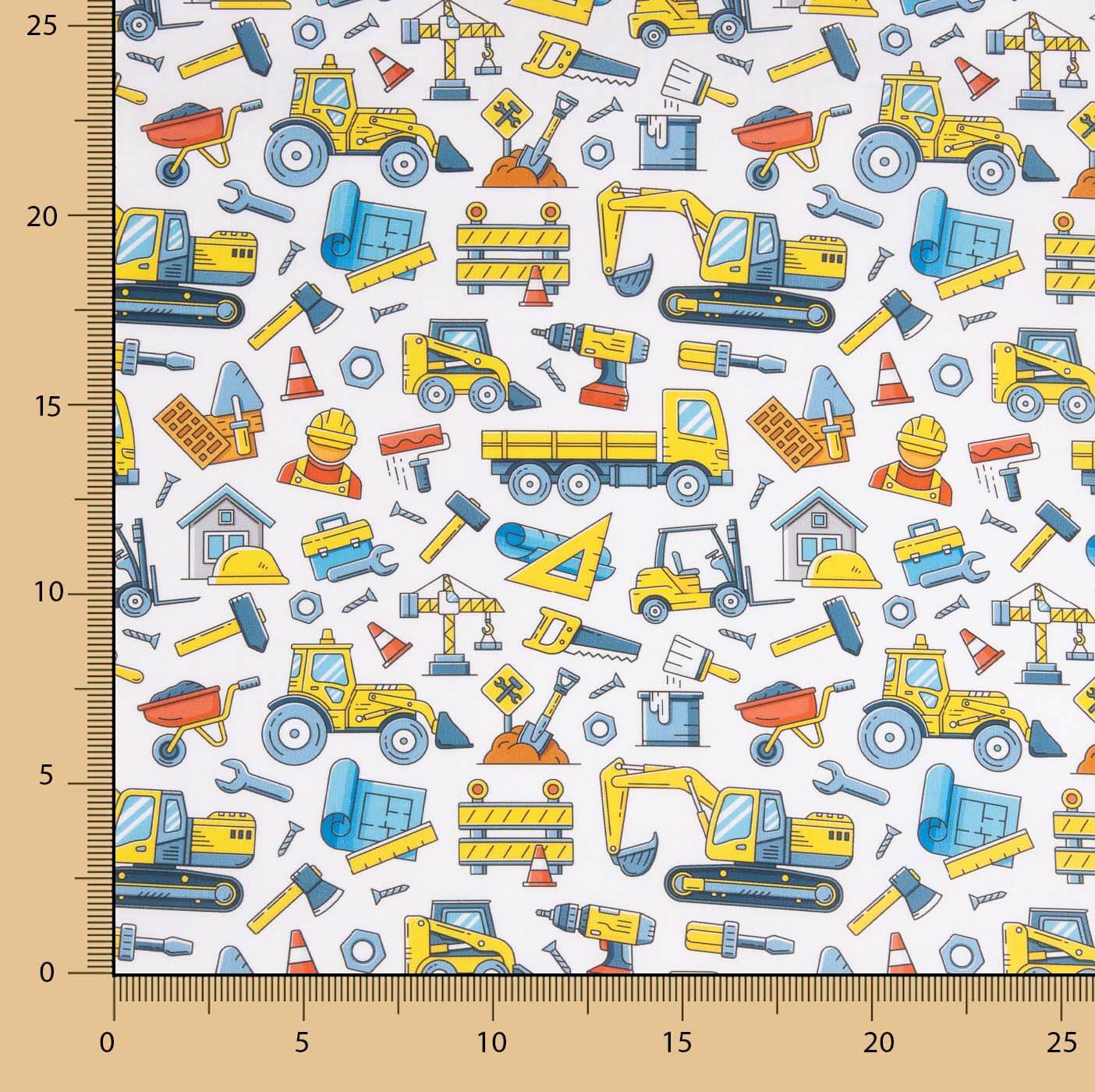 A soft, durable and easy-to-sew fabric designed for little fans of machinery and construction worlds.