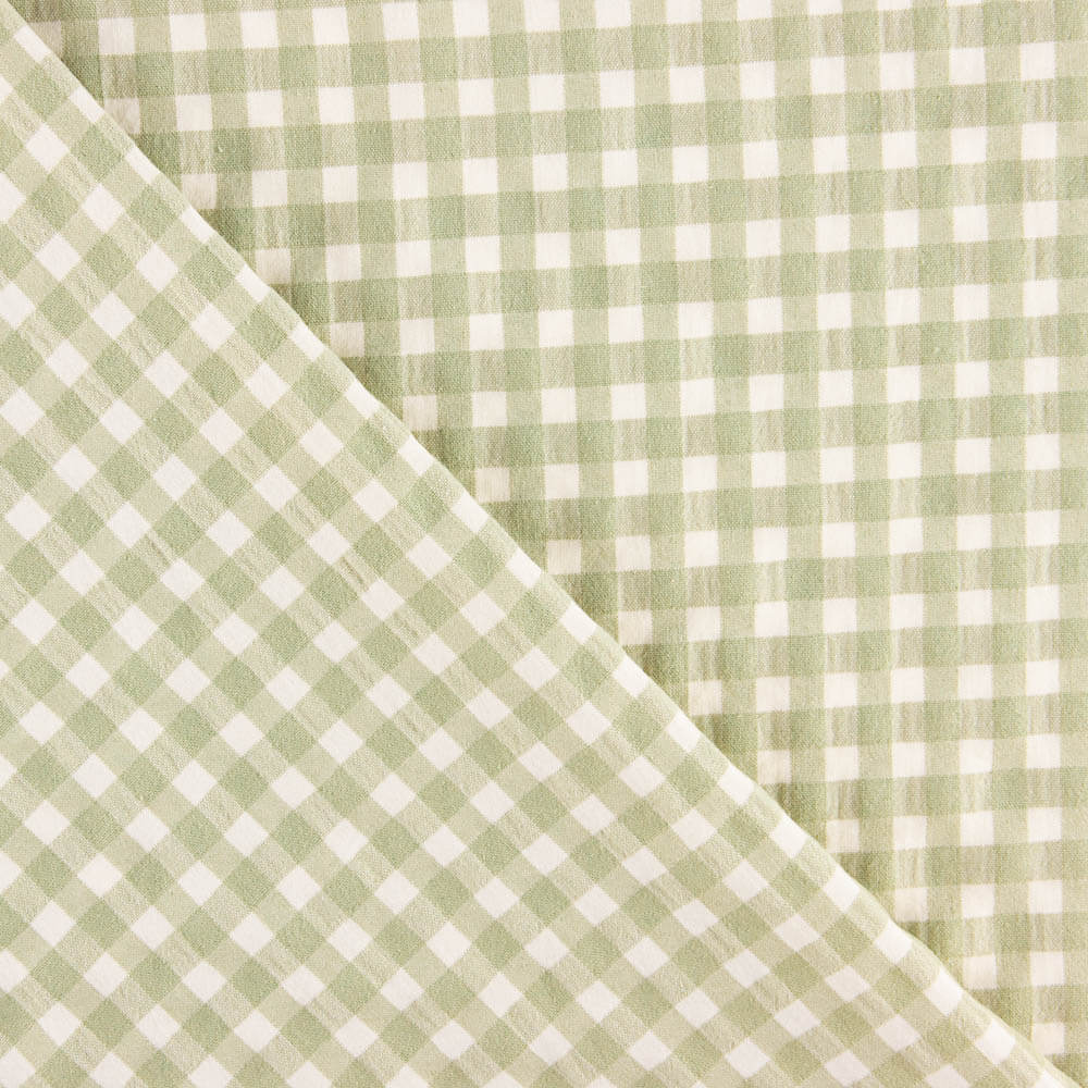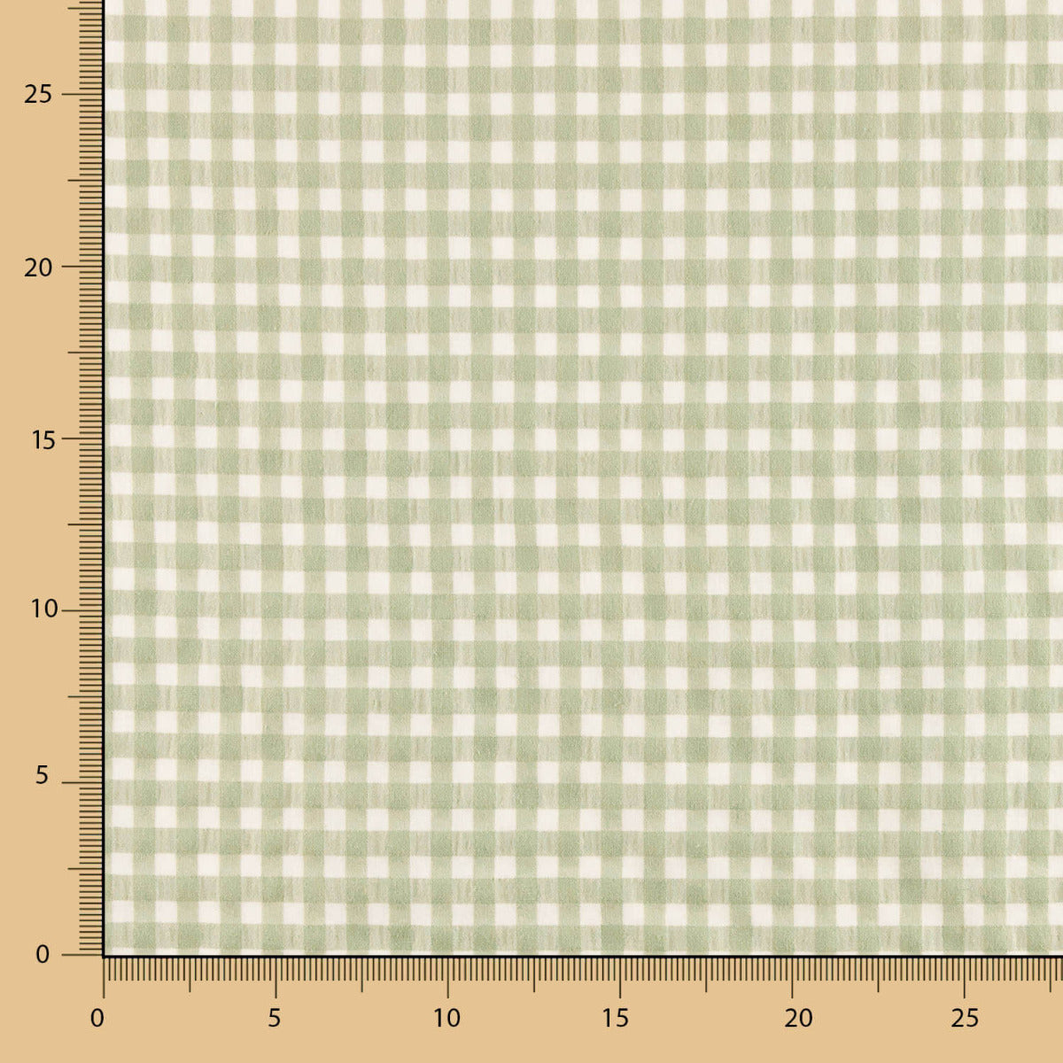 Aniseed Green Check Cotton Seersucker Cotton. Pink check print seersucker cotton. Approximate size of the check: 3mm. Seersucker is a fabric with a characteristic "crinkled" effect generated by the way the threads are woven. This cotton fabric is perfect for sewing dresses, shirts, dresses, trousers and jackets.