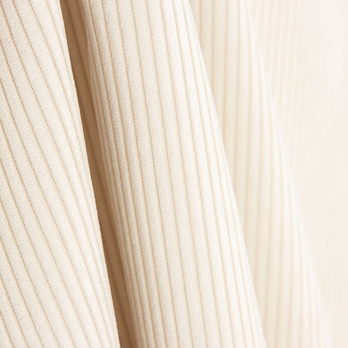This natural-toned corded corduroy fabric is a safe choice for creating bright, neutral and sophisticated spaces. Thanks to its special reinforcement for intensive-use upholstery, it is ideal for sofas, armchairs, headboards or frequently used furniture, offering an elegant and long-lasting finish. Its soft, pleasant touch and structured body also make it perfect for stylish cushions, bags or outerwear. It features a stain-resistant treatment that makes it easy to clean and maintain, especially in busy homes or public spaces. Technically, it offers high abrasion resistance (> 80,000 rubs – ISO 12947-1,2), pilling 3/4 (ISO 12945-2) and maximum lightfastness 5/5 (ISO 105-B02), ensuring a flawless look and lasting colour over time. Its neutral tone blends effortlessly with any colour scheme and suits both classic and contemporary interiors.