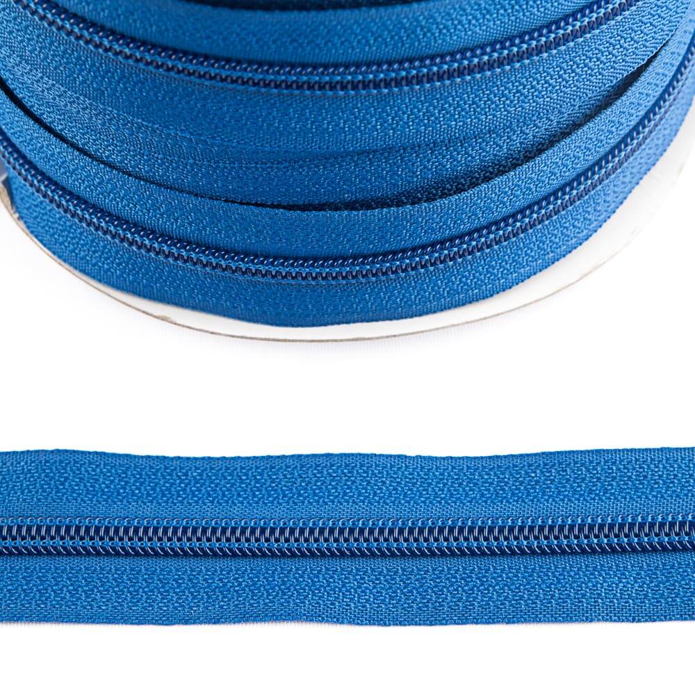 Cremallera continua de malla 5 en color azul intenso.