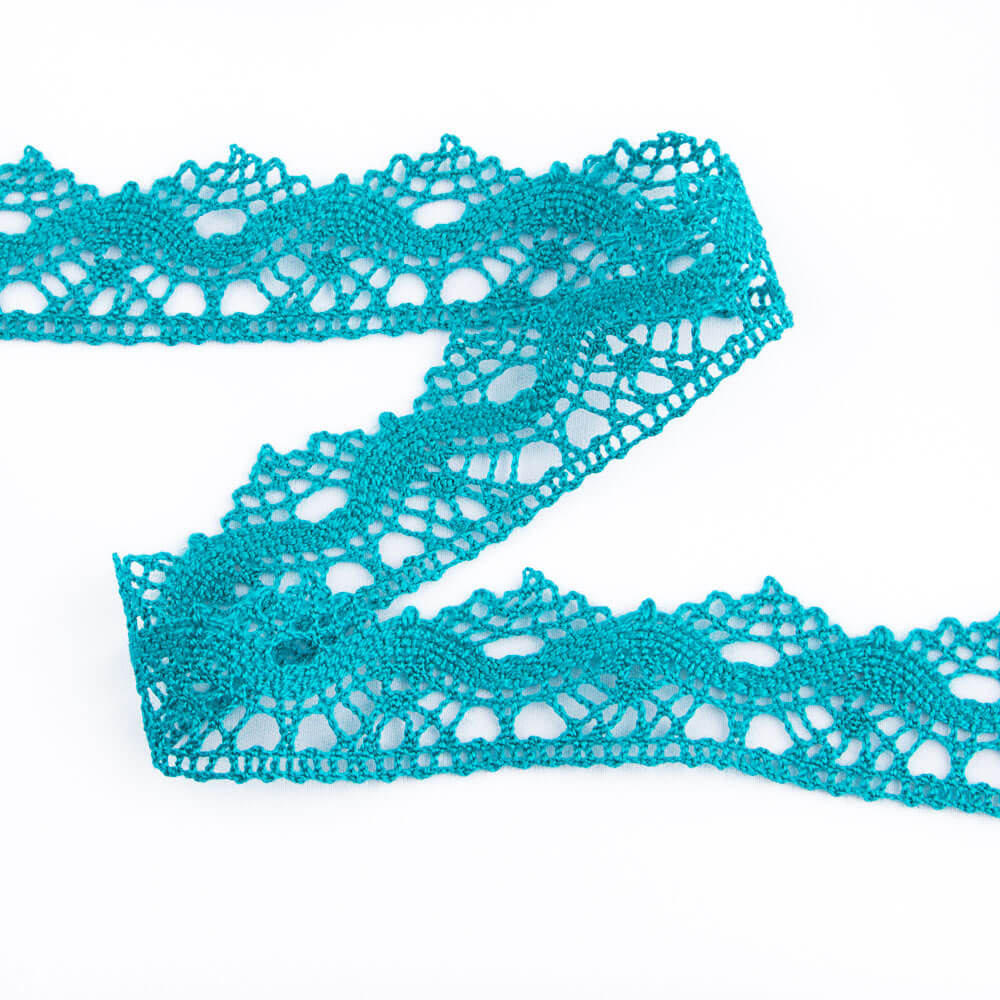 Forest green guipure embroidery ribbon. Wave shaped guipure embroidery ribbon , 3 cm width at its widest part and 2,3 cm at its narrowest. Buy from 1 metre. ON SALE / Haberdashery Remnants.