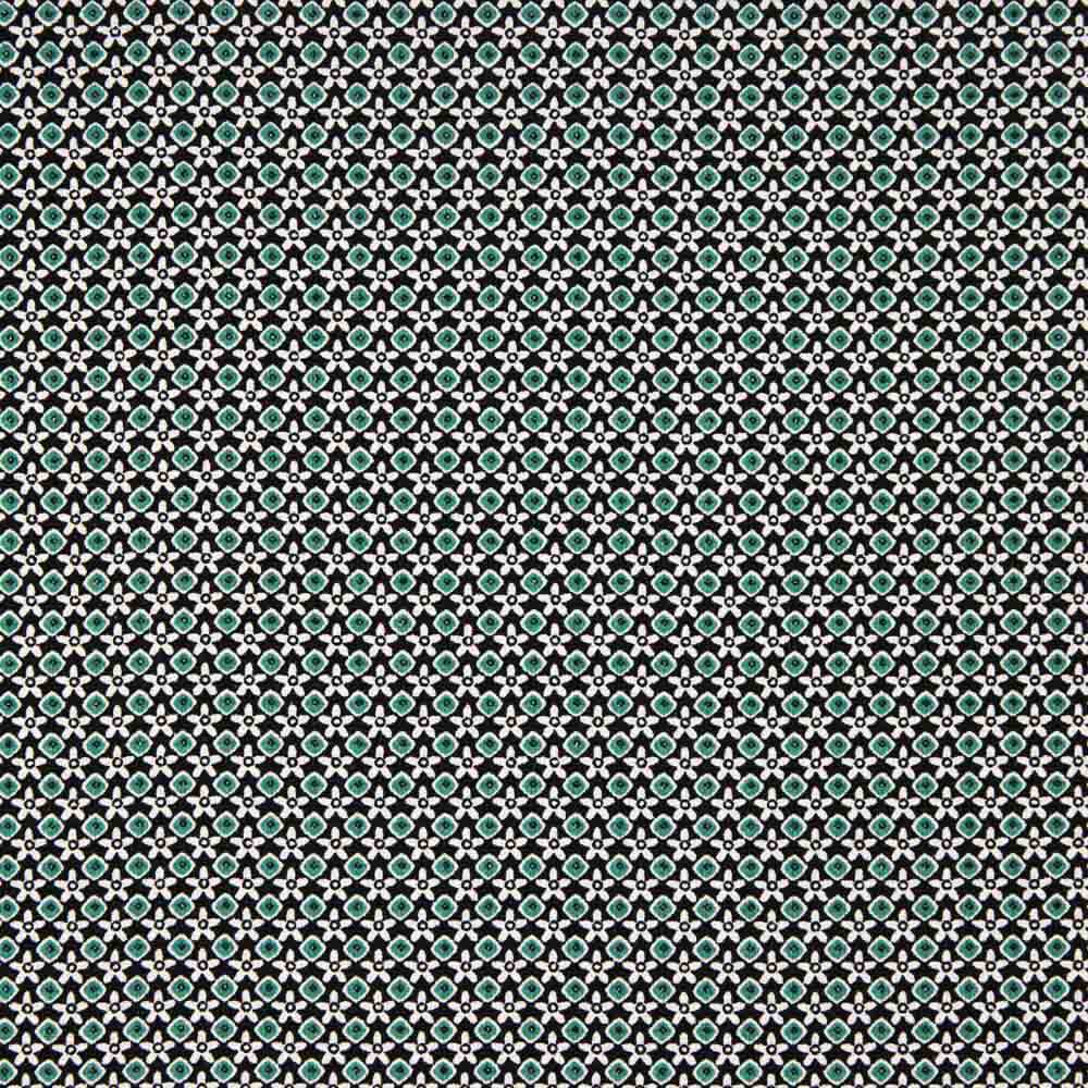 Tela de georgette estampado mini geométrico en tonos turquesas y verdes, una opción elegante y versátil, conocida por su ligereza y fluidez.