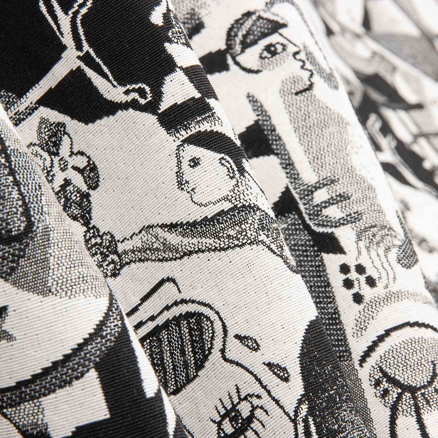 The monochrome abstract art Gobelin canvas fabric stands out for its original design inspired by contemporary-style artistic illustrations, featuring geometric prints and black-and-white figures that lend a modern, creative and highly decorative feel to any space.