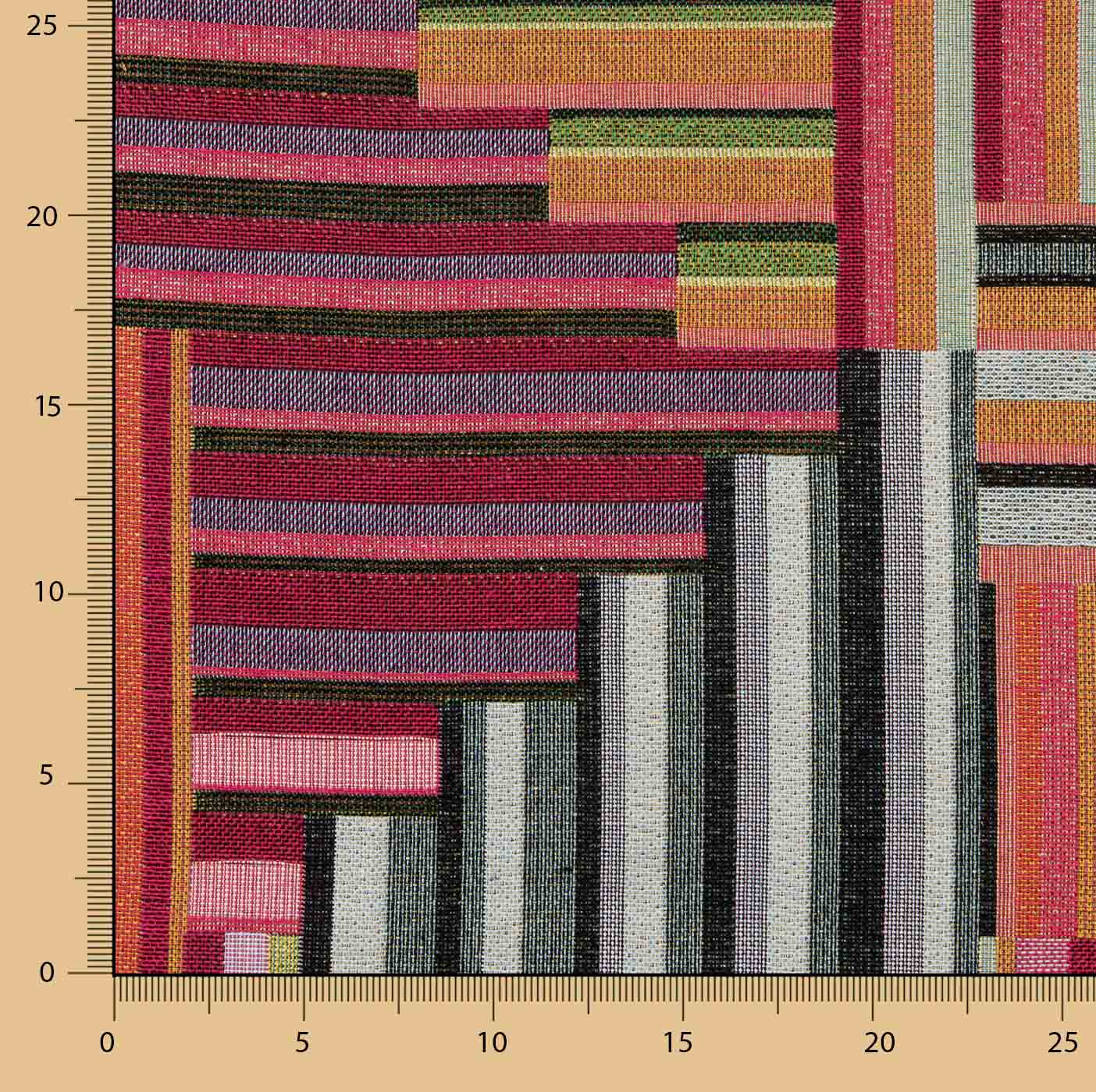 Add a modern and vibrant touch to your home with this striking chenille tapestry fabric featuring a maxi geometric print. Soft to the touch thanks to its chenille texture and resistant due to its cotton and polyester blend, it is the perfect choice for upholstery, cushions and curtains. With a width of 280 cm, this fabric allows you to cover large areas efficiently, ideal for giving a contemporary feel to any room.