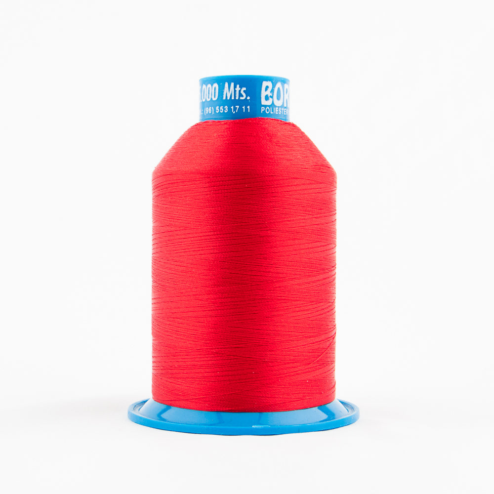 Bobina de hilo de color rojo 2010, ideal para bordar, marca Bordafil presentada en carretubos de 5000 metros. Es un hilo brillante de poliéster fabricado en filamento contínuo. Este hilo, por su preparación técnica y control, es el adecuado para máquinas automáticas de bordar de alta velocidad.