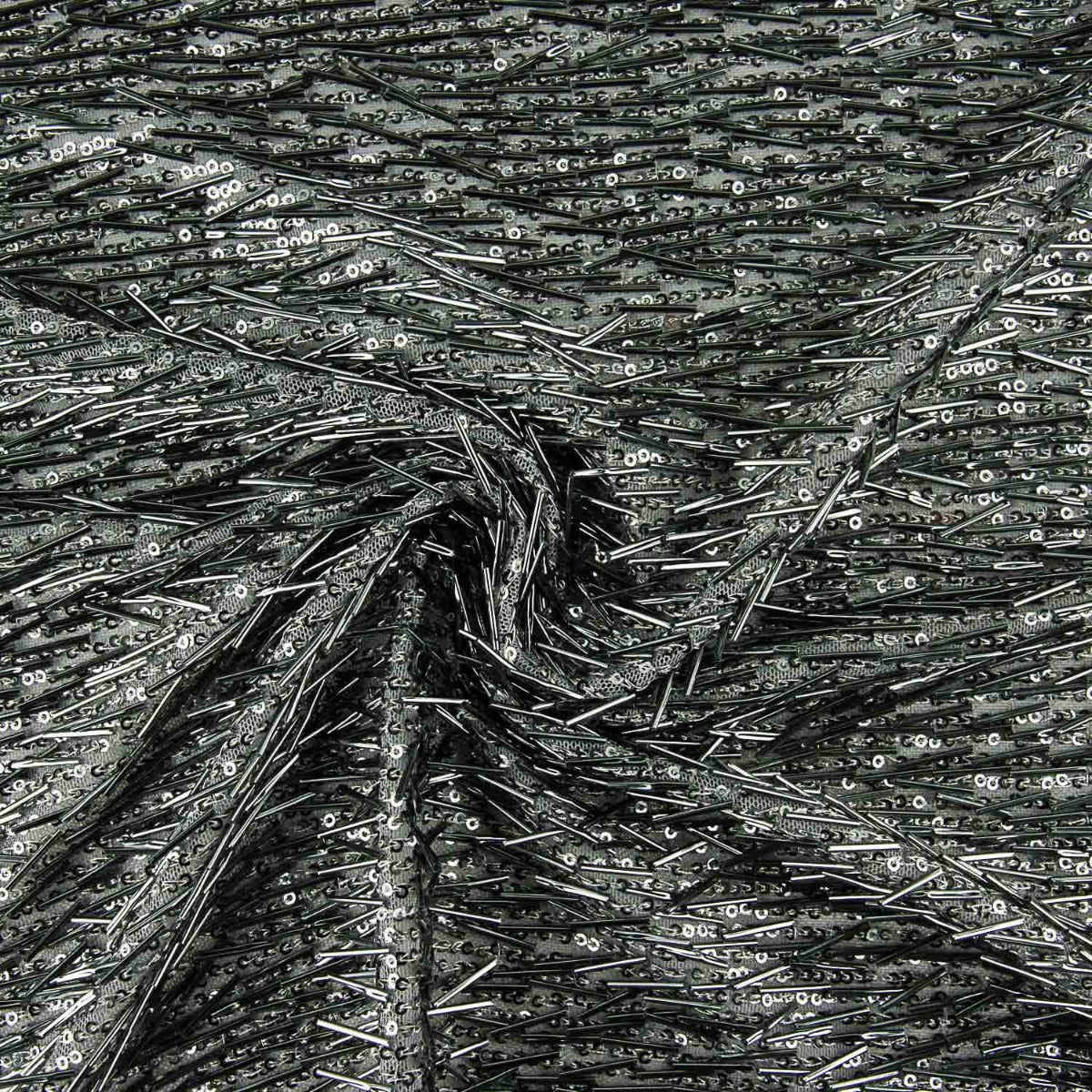 Lentejuelas de canutillo con mucho movimiento de color gris plomo vestidos de fiesta sobre base de poliéster un poco elástica y suave a la piel. Lentejuelas brillantes y muy vistosas, fina, con mucha caída y de alta calidad. La lentejuela es una tela que aporta elegancia a las prendas de ropa confeccionadas. Con esta tela de lentejuelas negra podrás confeccionar tus propias faldas con brillantes, vestidos de fiesta y todo de apliques de moda.