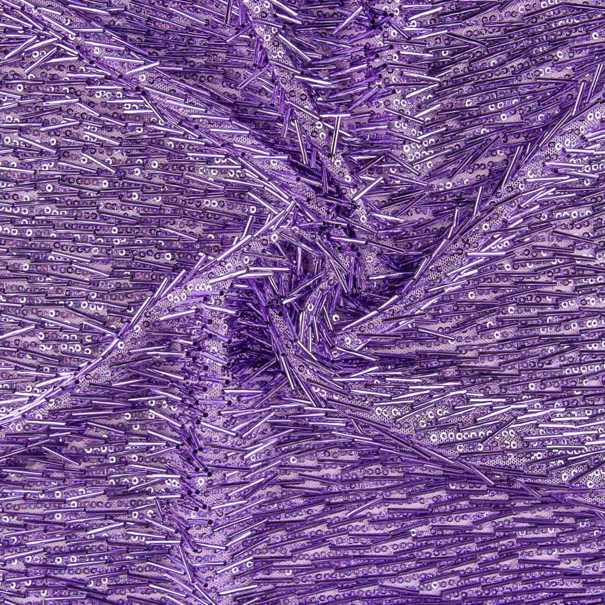 Lentejuelas de canutillo con mucho movimiento de color lila vestidos de fiesta sobre base de poliéster un poco elástica y suave a la piel. Lentejuelas brillantes y muy vistosas, fina, con mucha caída y de alta calidad. La lentejuela es una tela que aporta elegancia a las prendas de ropa confeccionadas. Con esta tela de lentejuelas negra podrás confeccionar tus propias faldas con brillantes, vestidos de fiesta y todo de apliques de moda.